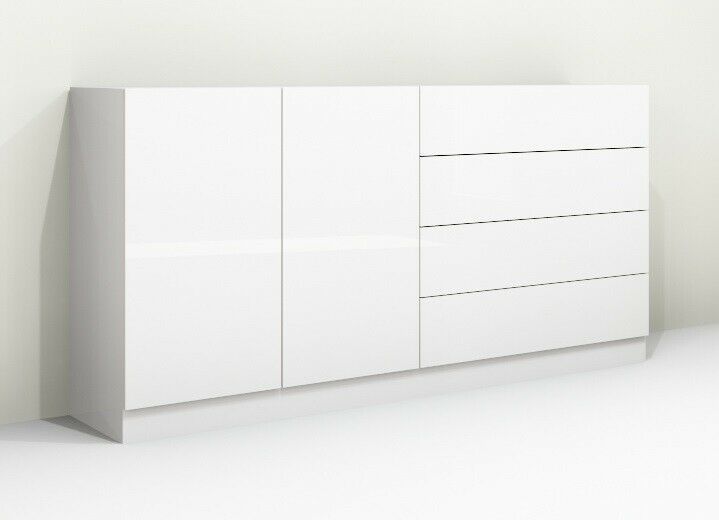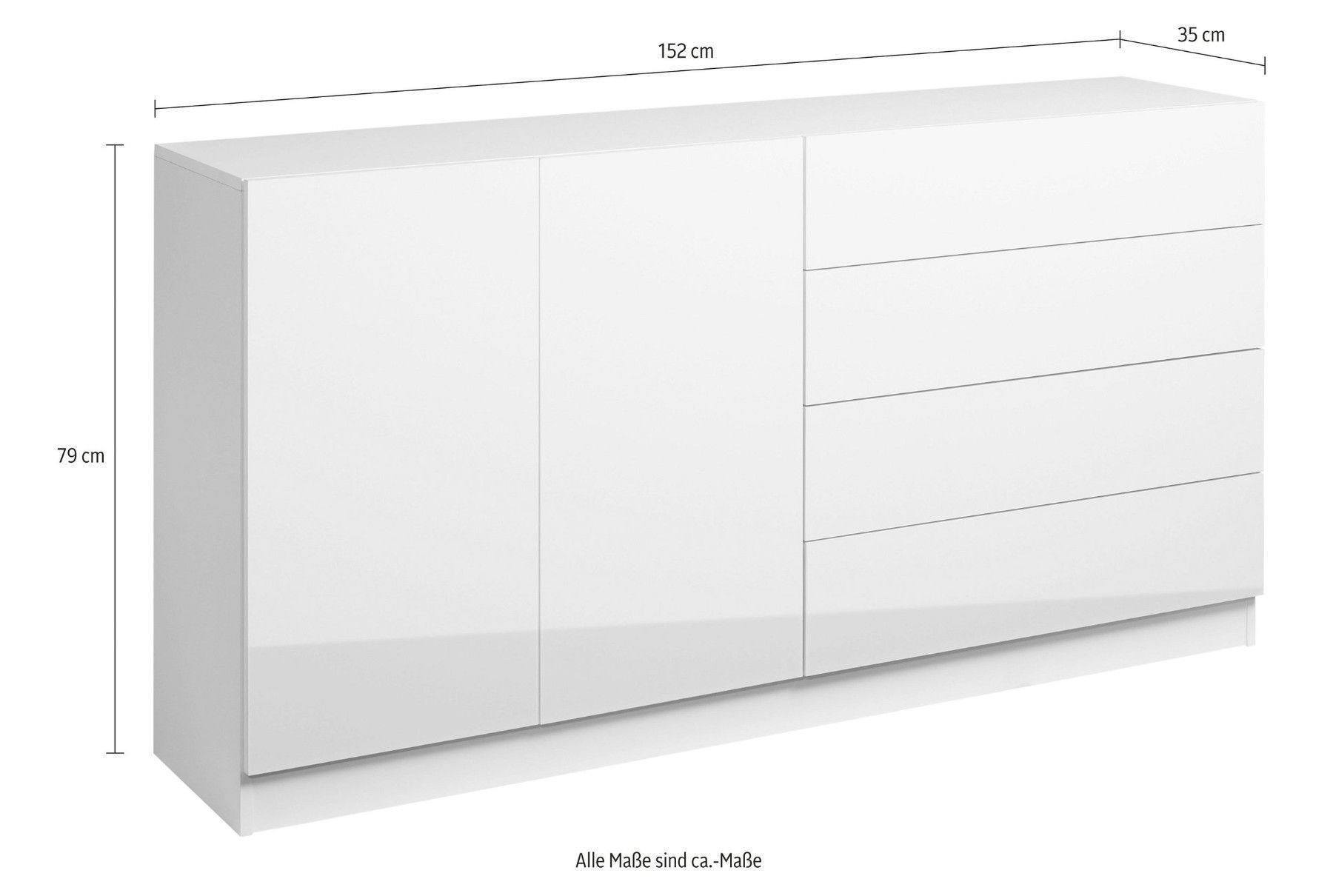 Kommode "Vaasa" 152 cm Anrichte Sideboard Schrank Möbel Flur Hochglanz Weiß Trend