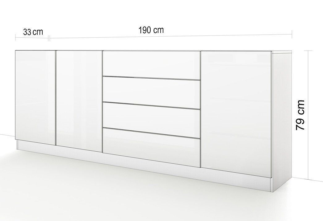Kommode" Vaasa" 190 cm Anrichte Sideboard Schrank Möbel Flur Wohnzimmer Hochglanz
