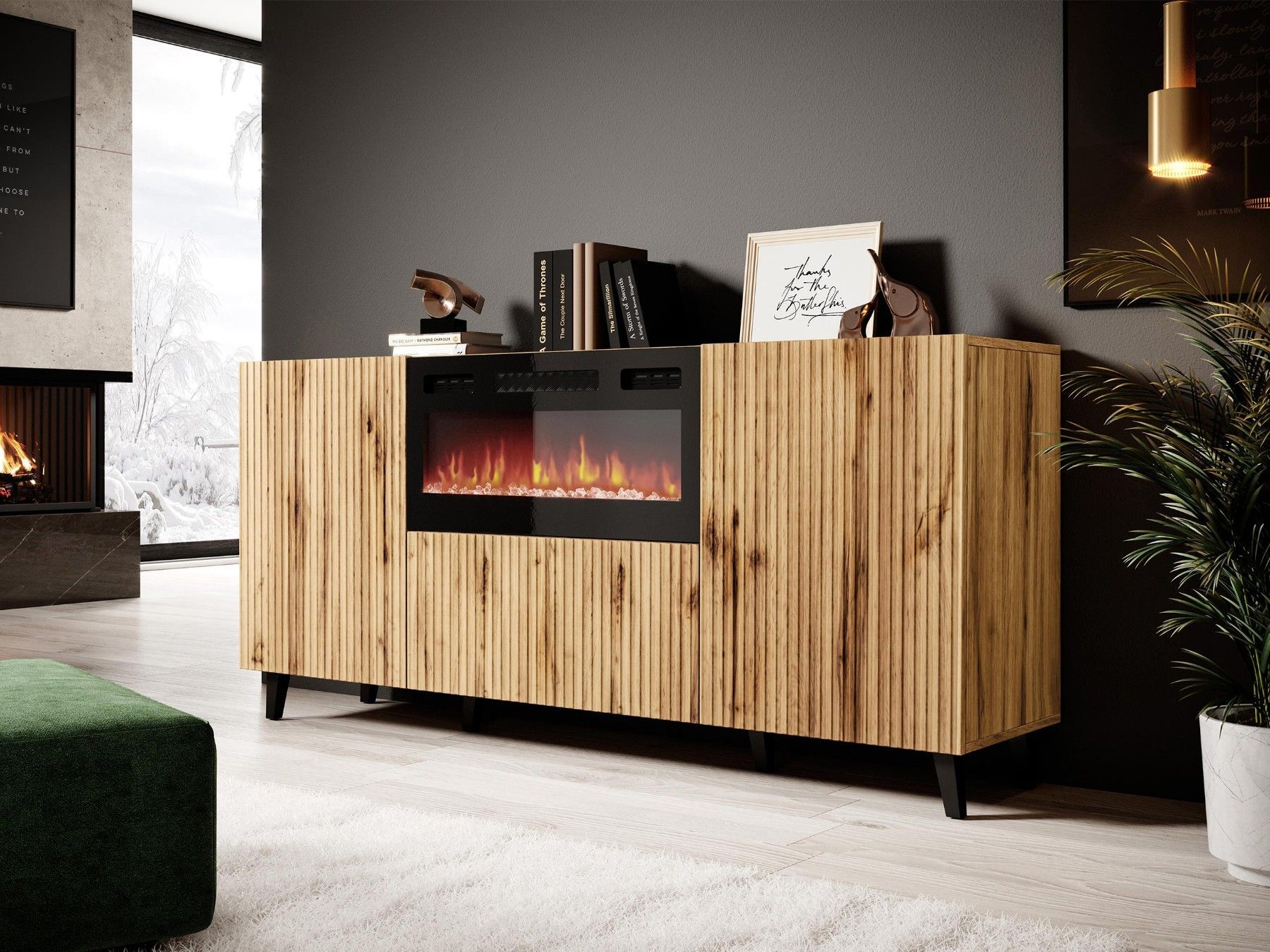 Kommode Vamos 180 Highboard mit Kamin Stilvoll Sideboard Modern Wohnzimmer