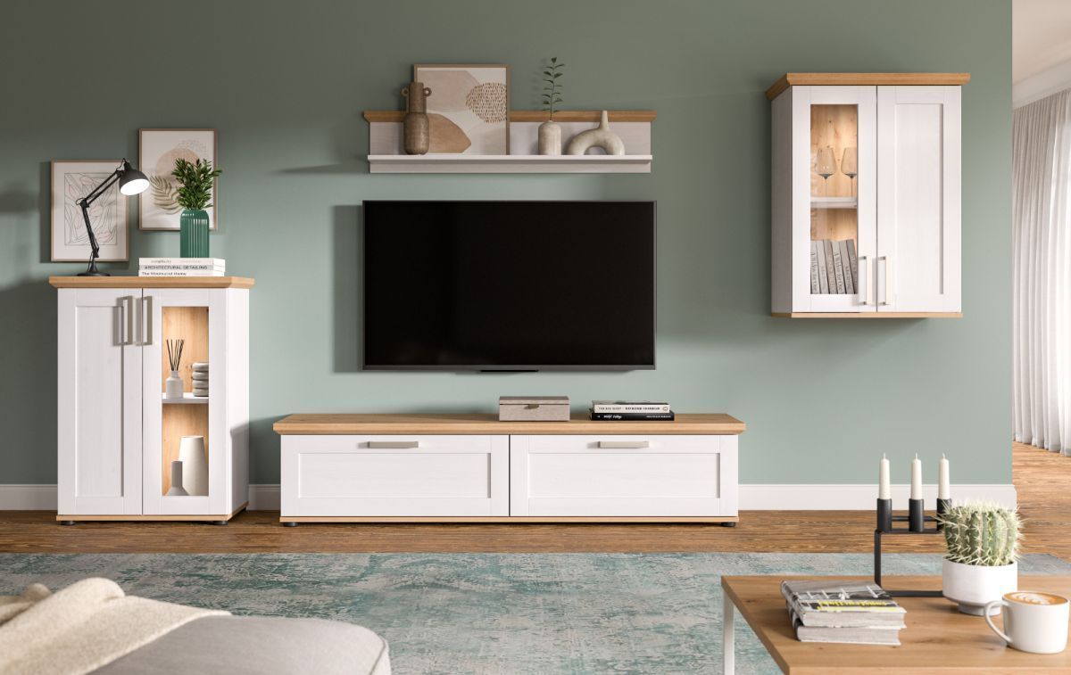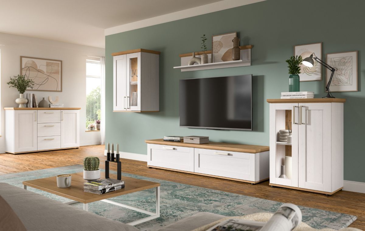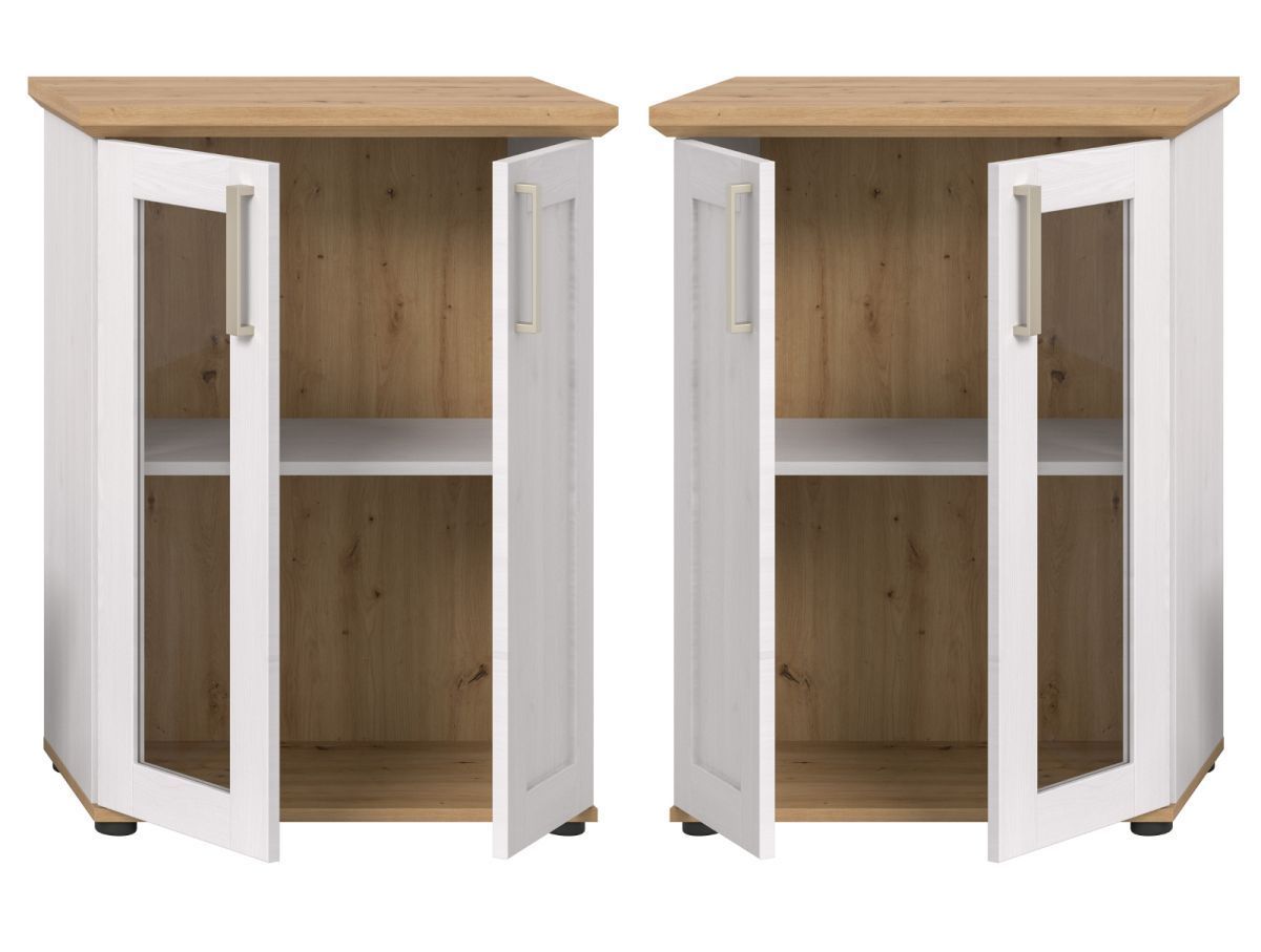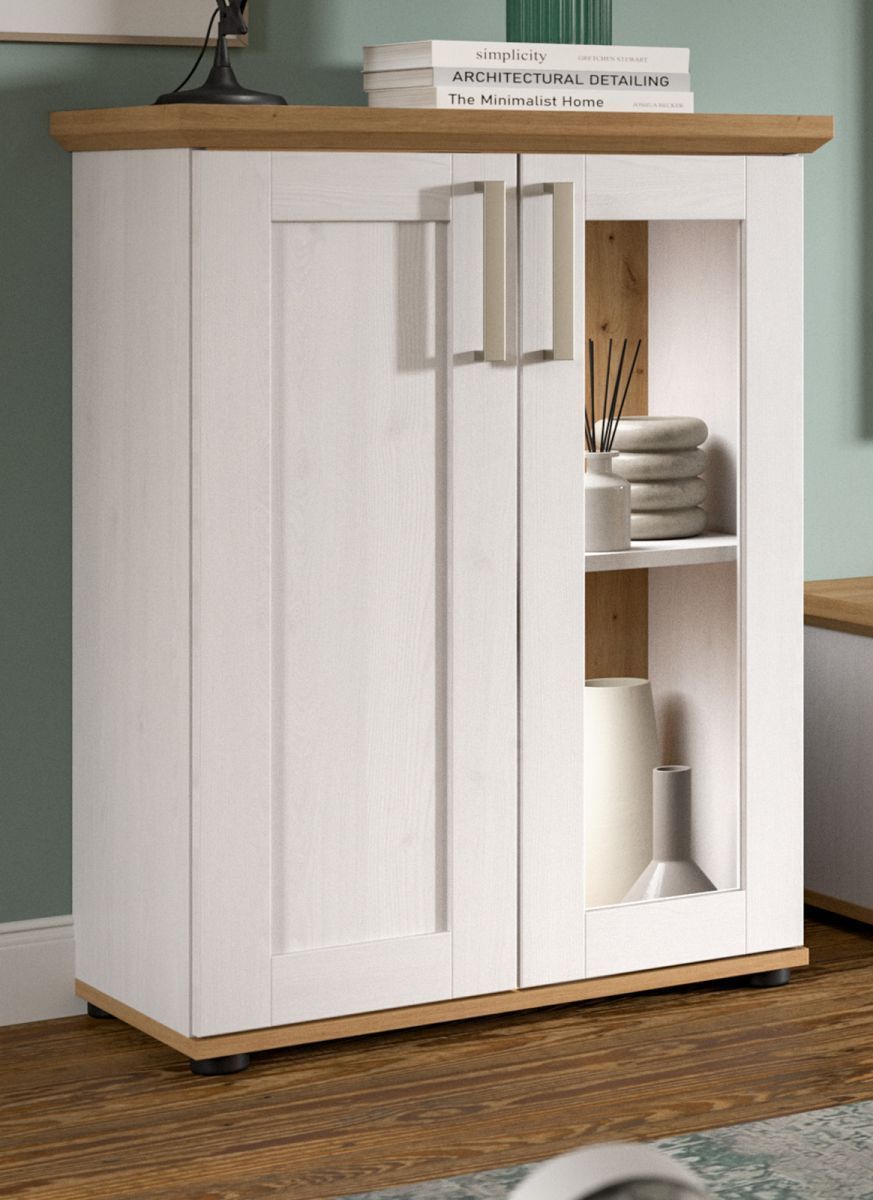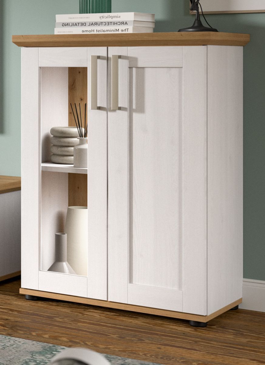 Kommode Vitrine weiß Lärche Eiche Artisan Landhaus Highboard 64 x 88 cm Mirano