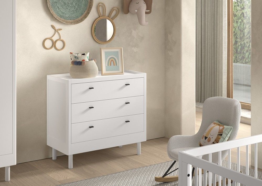 VIPACK Kommode Wickelkommode 3 Schubladen Sideboard Buche Massivholz Weiß lackiert