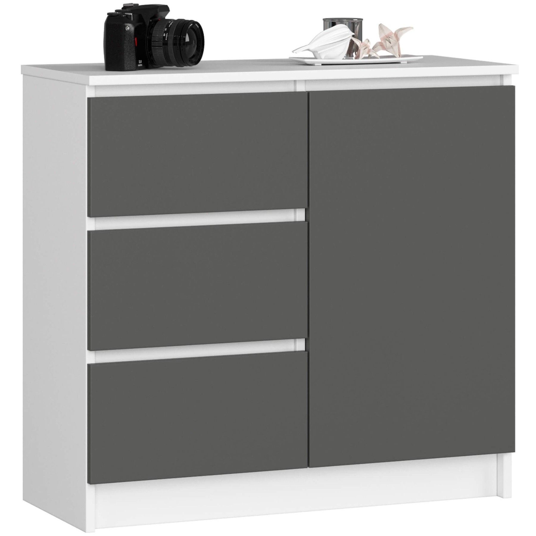 Kommode Wohnzimmer Jerry 3 Schubladen Schrank 2 Einlegeböden und 1 Tür 80x77x35 cm