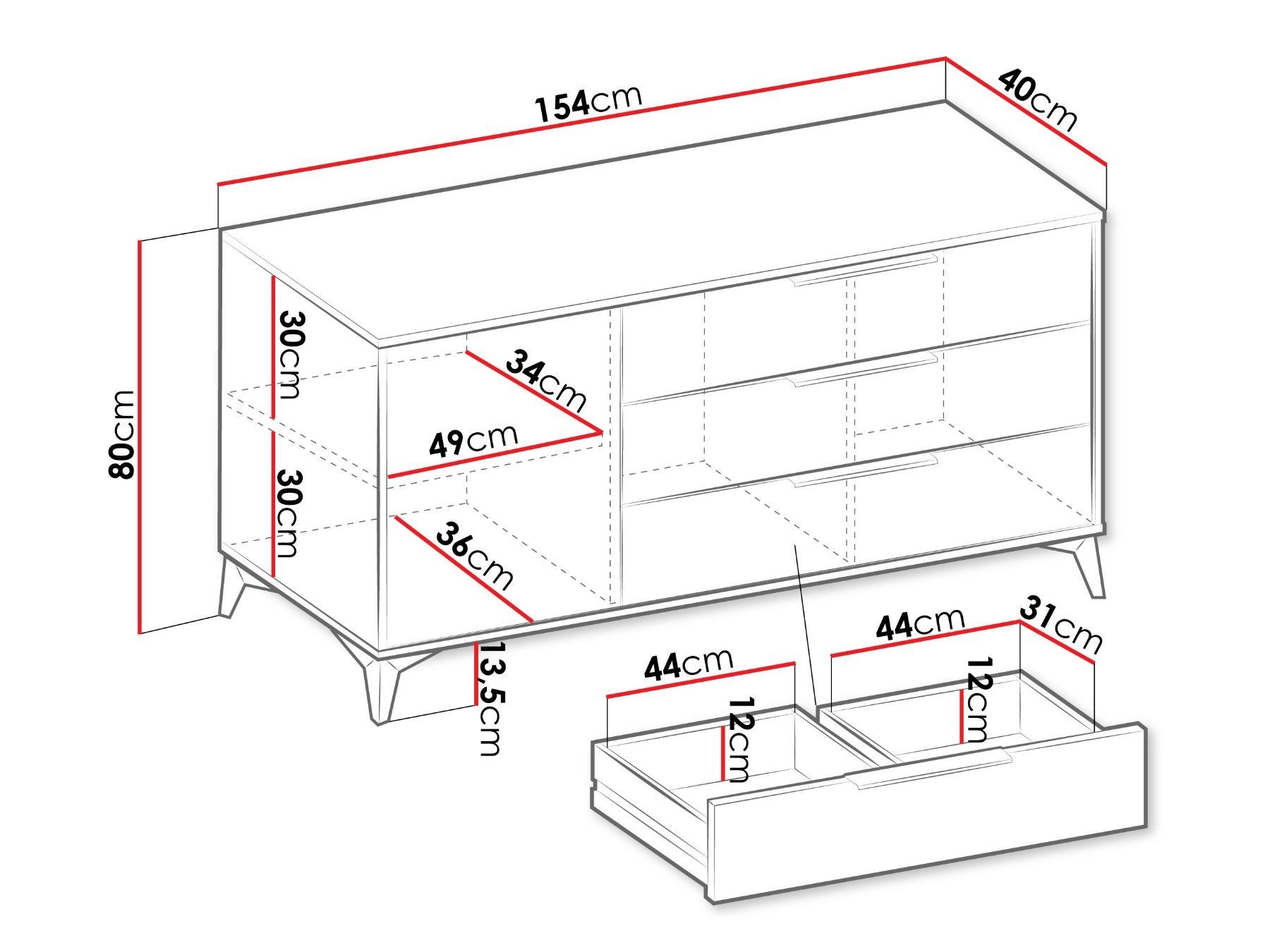 Kommode Xylix Bis 1D3SZ mit 3 Schubladen Kombikommode Modern Wohnzimmer Kollektion