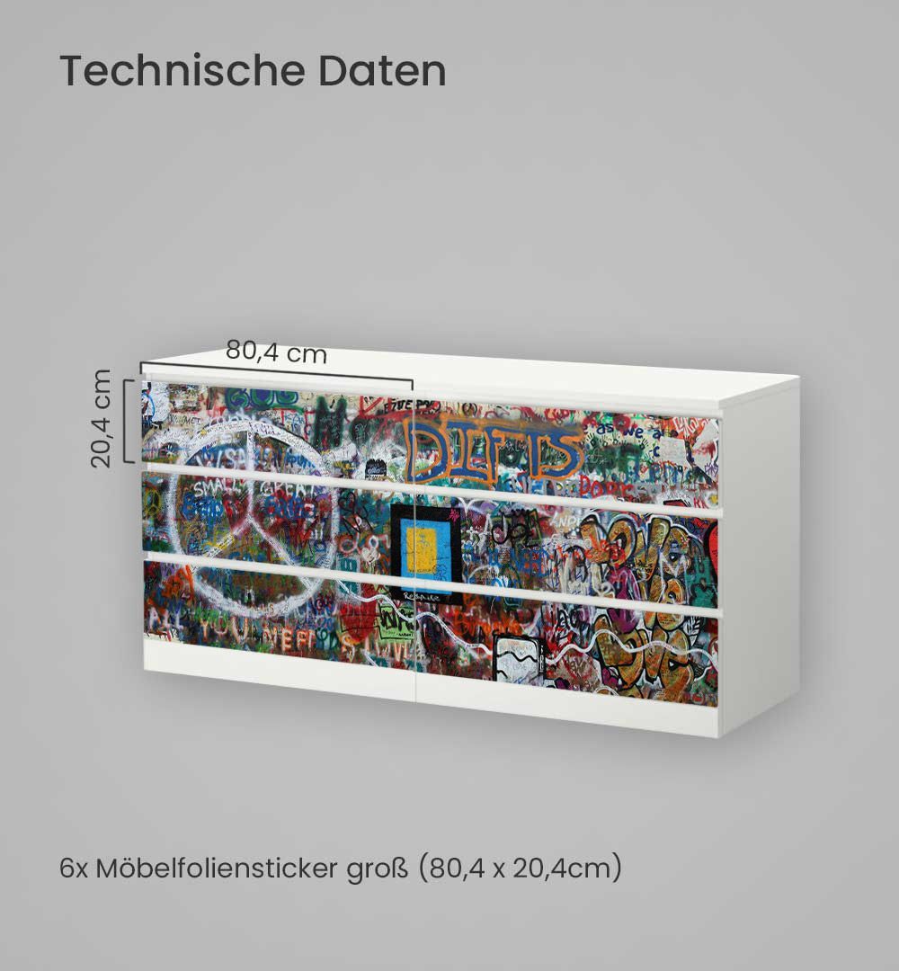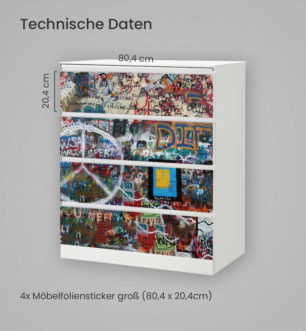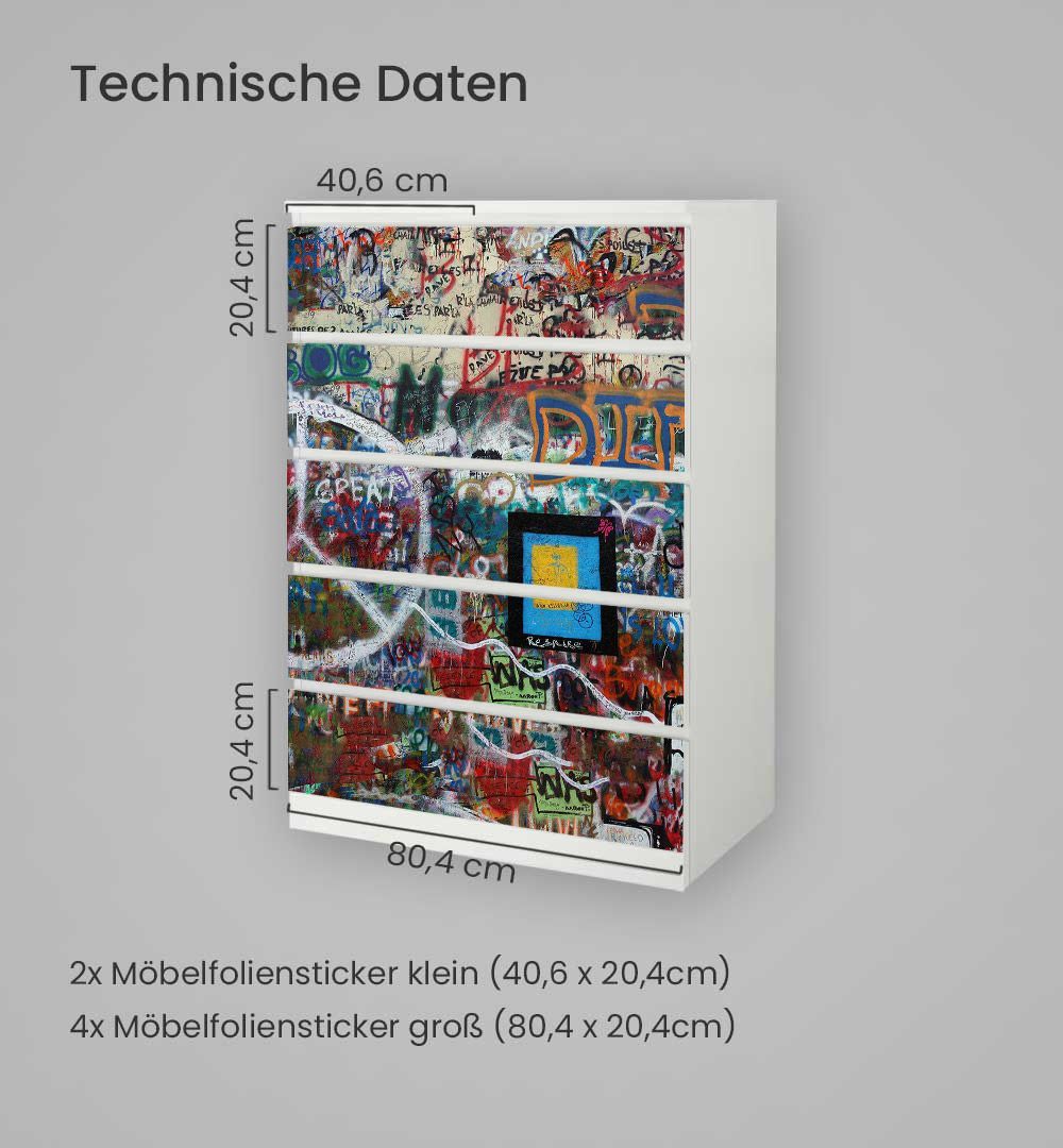 Kommodenaufkleber Malm Abstraktes Graffiti Gemälde Klebefolie Möbelfolie Folie