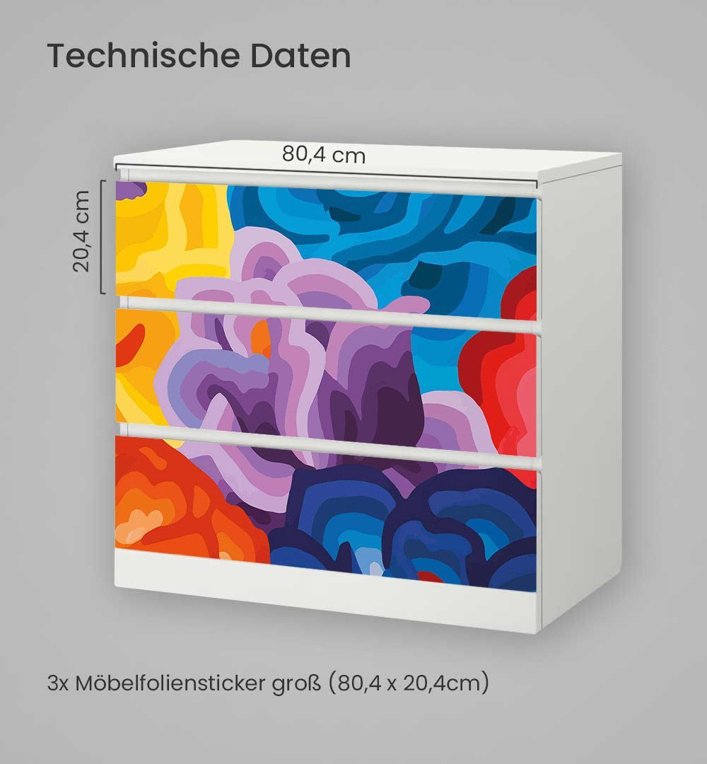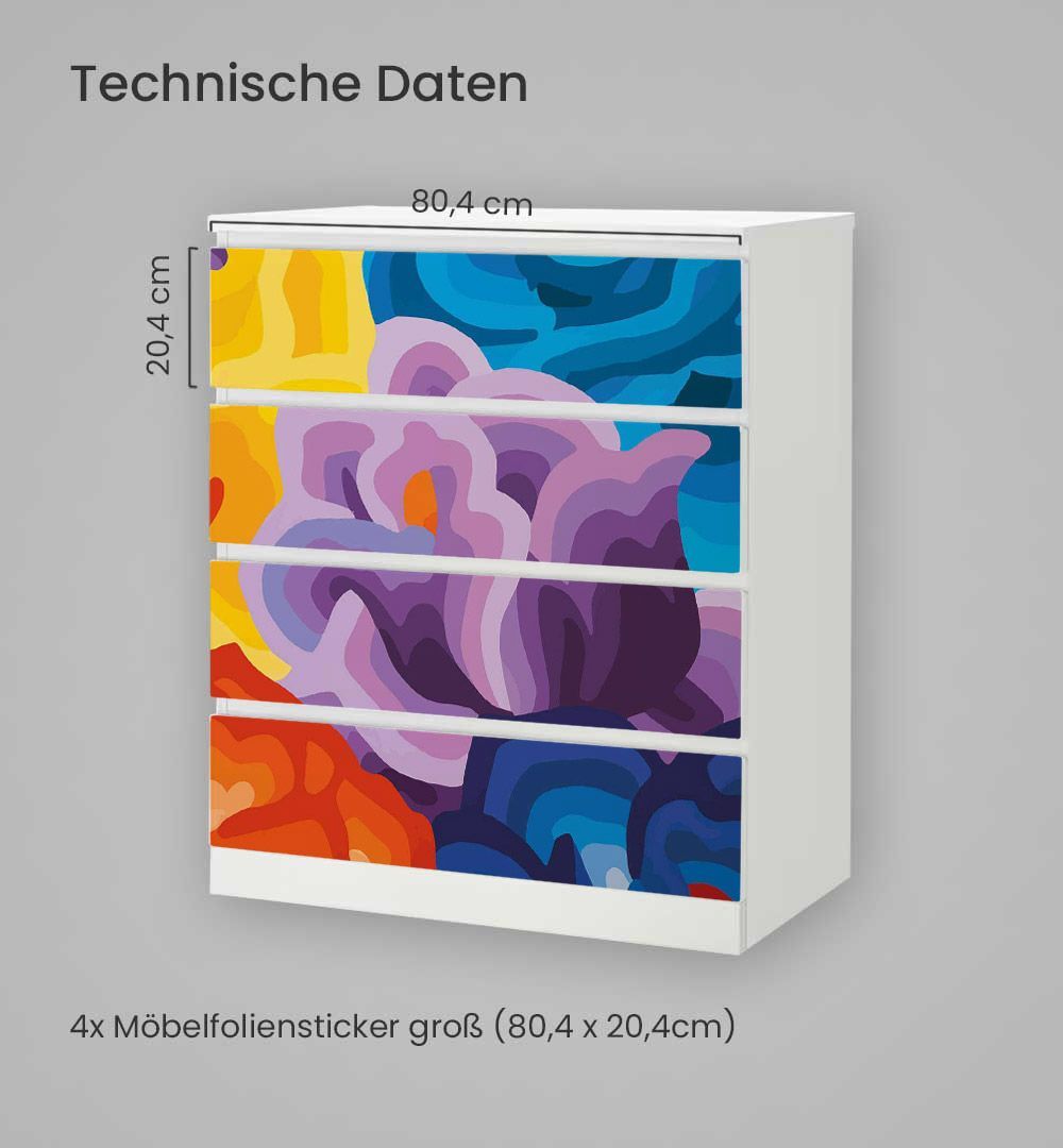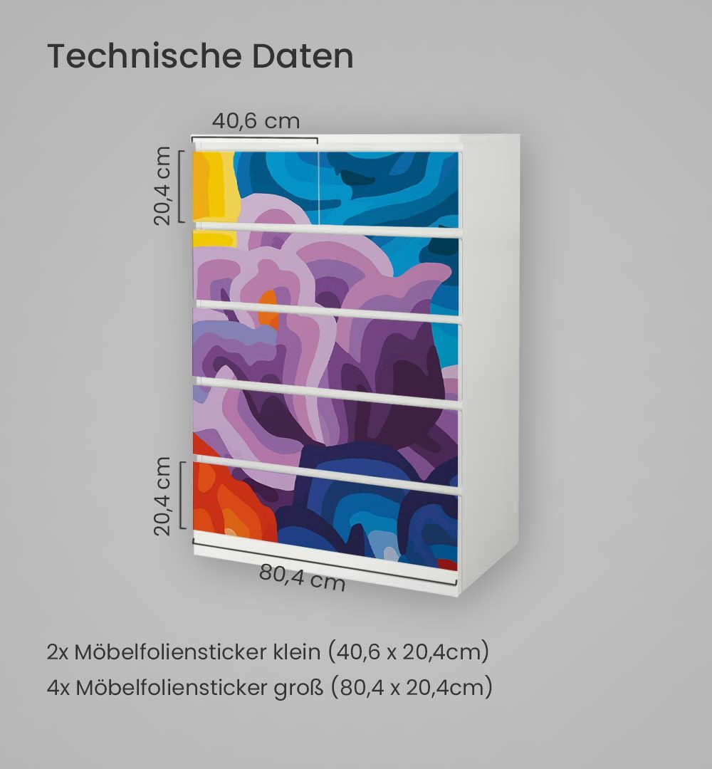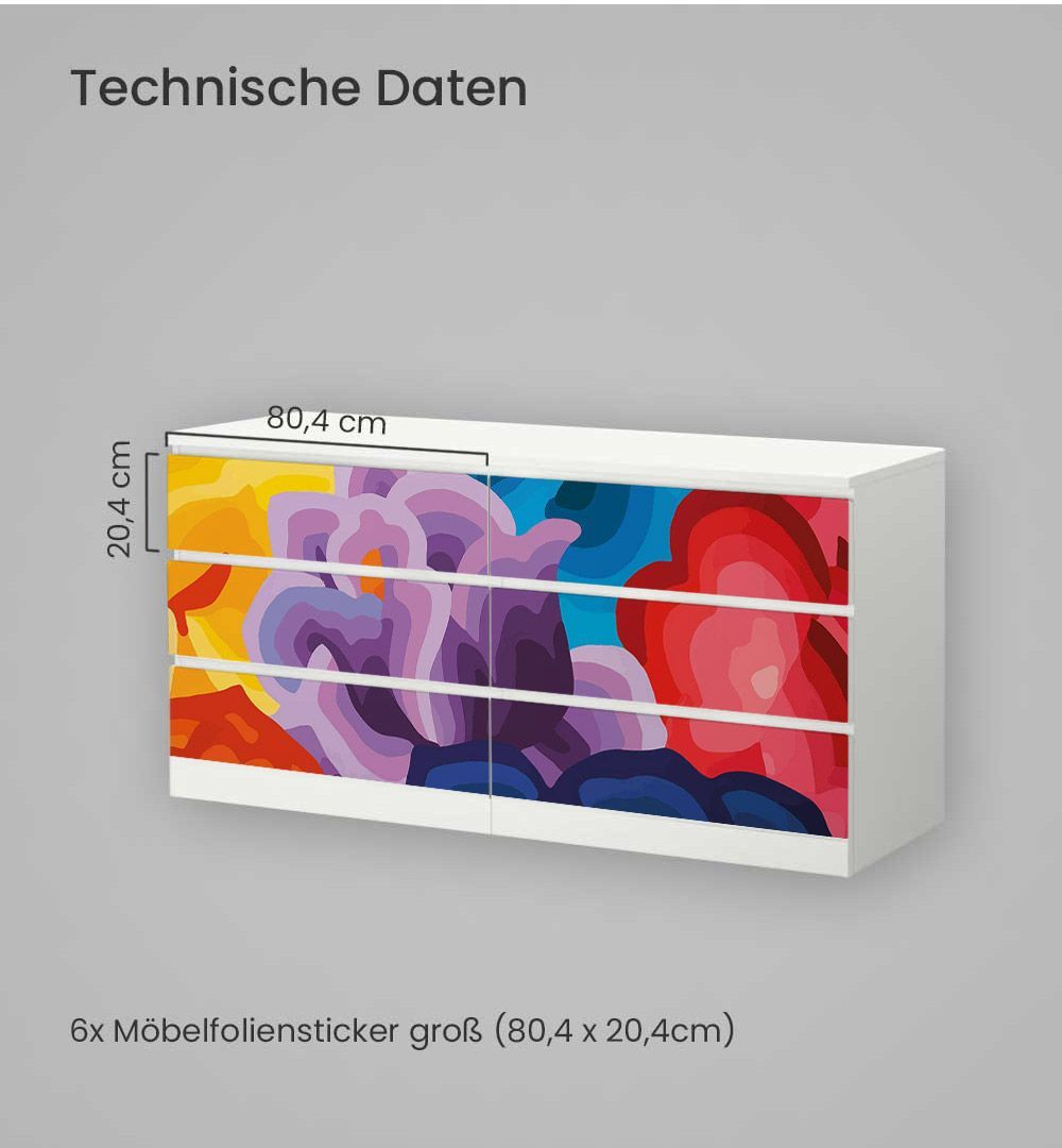 Kommodenaufkleber Malm Blumen Zeichnung Klebefolie Möbelfolie Folie