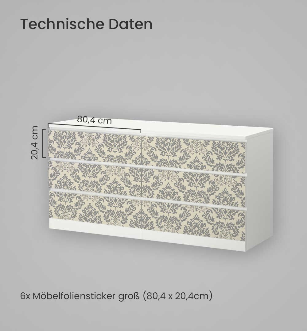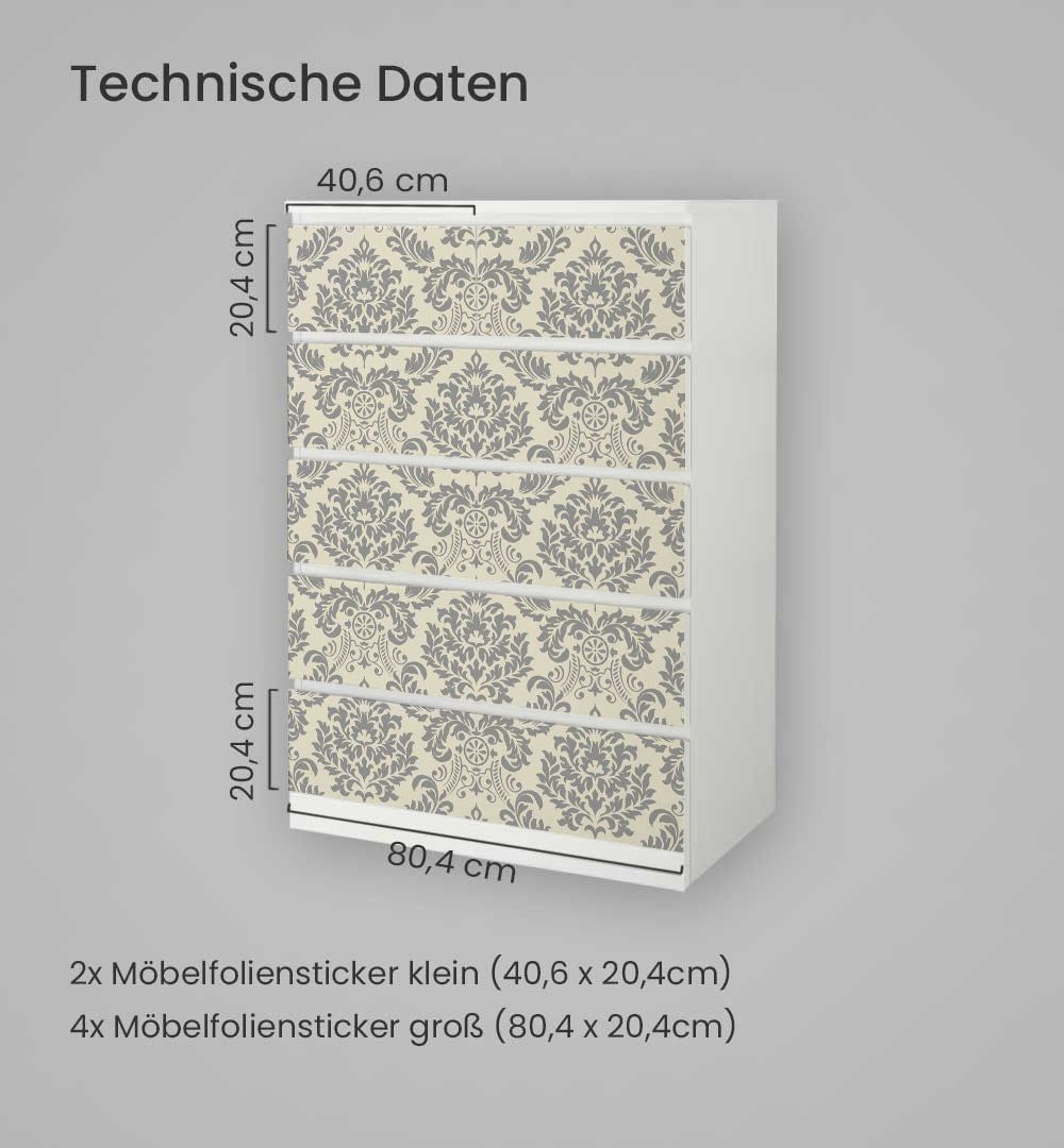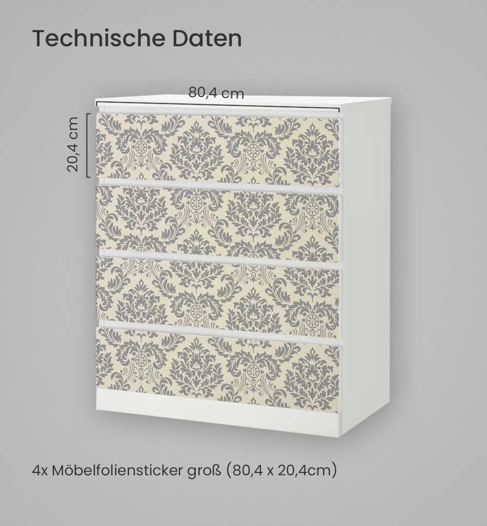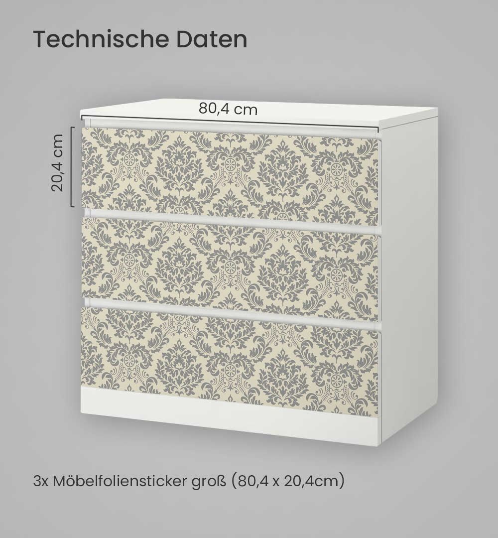 Kommodenaufkleber Malm Edle Ornament Muster Klebefolie Möbelfolie Folie