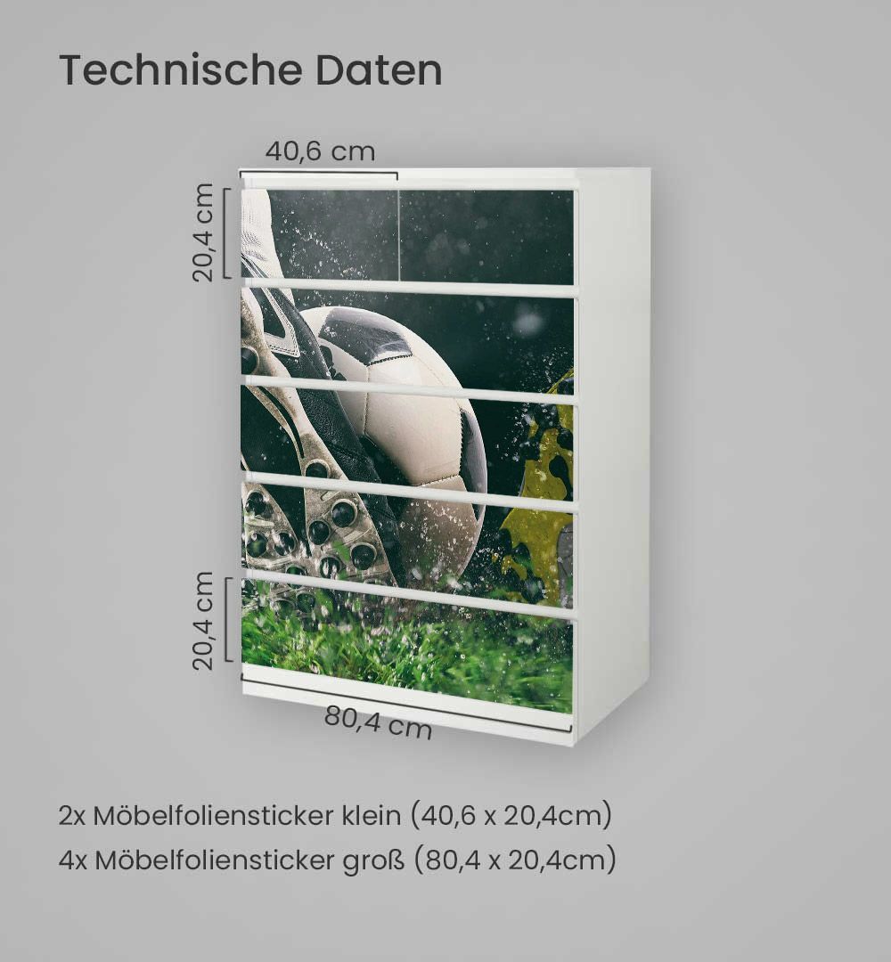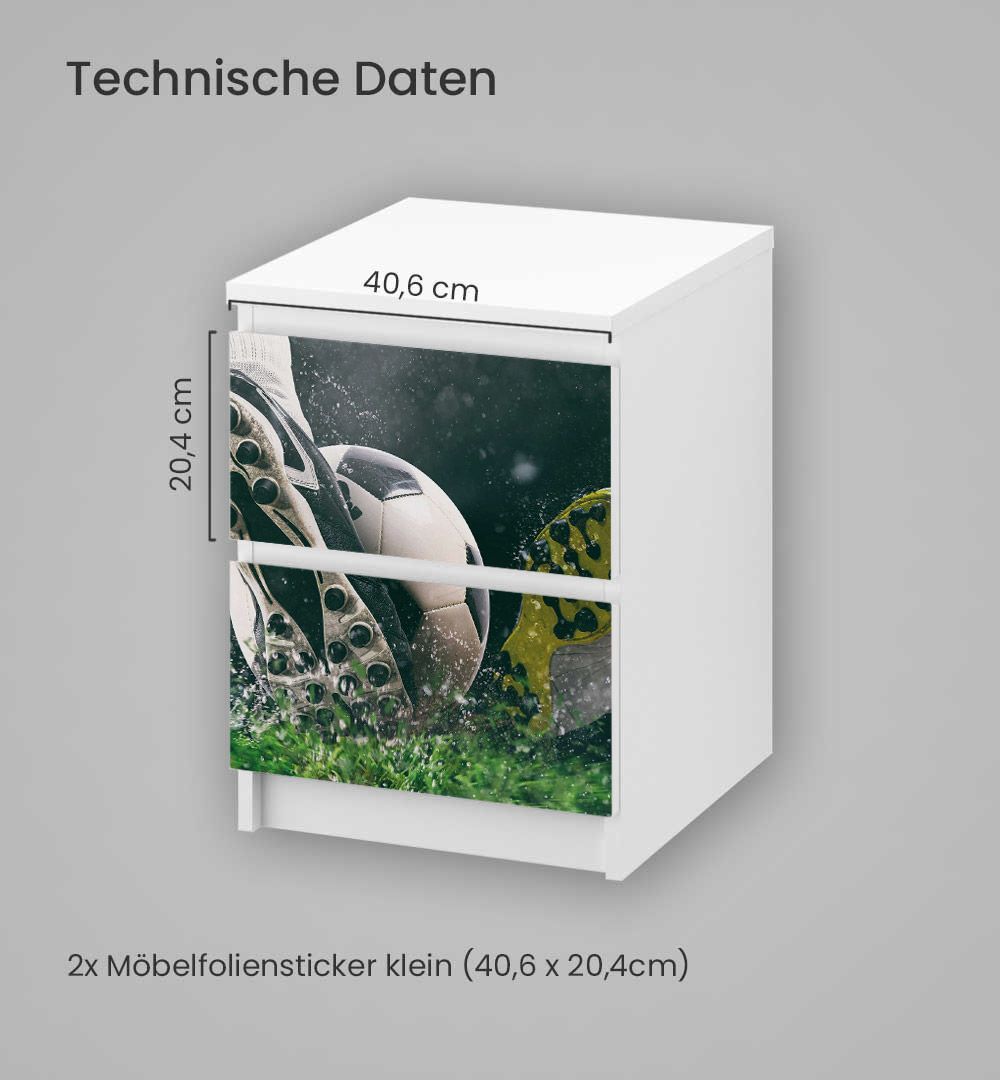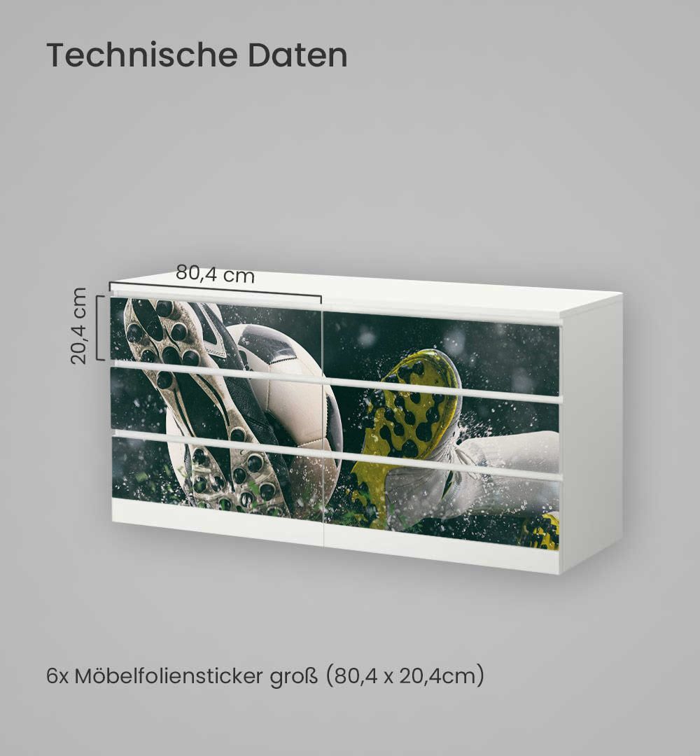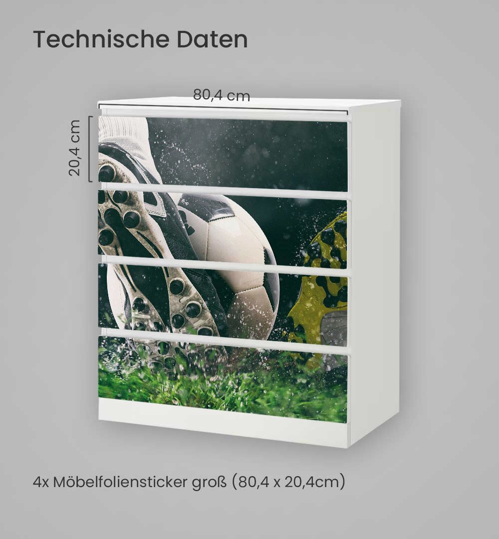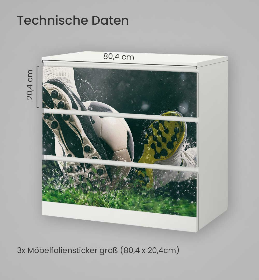 Kommodenaufkleber Malm Fußball Spiel auf Rasen Klebefolie Möbelfolie Folie