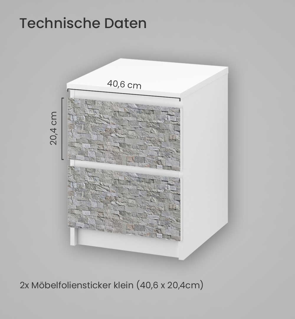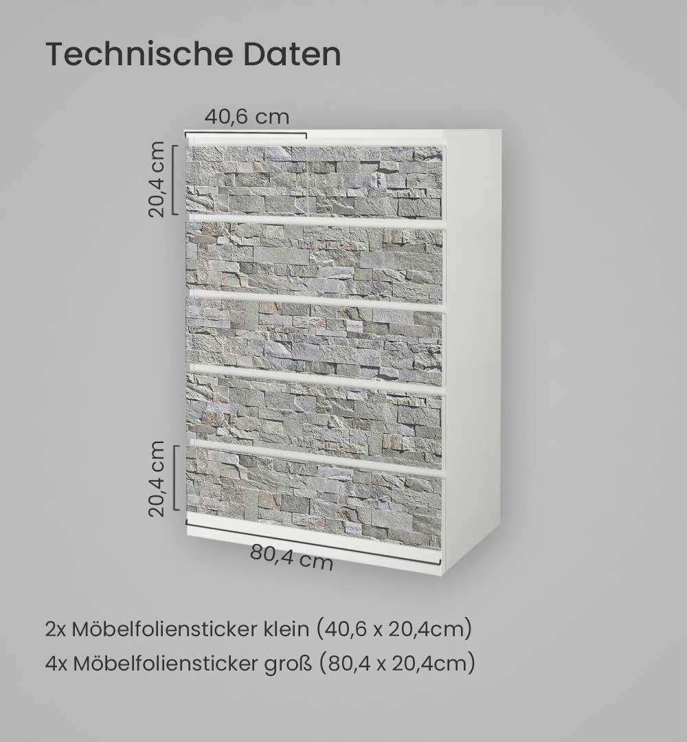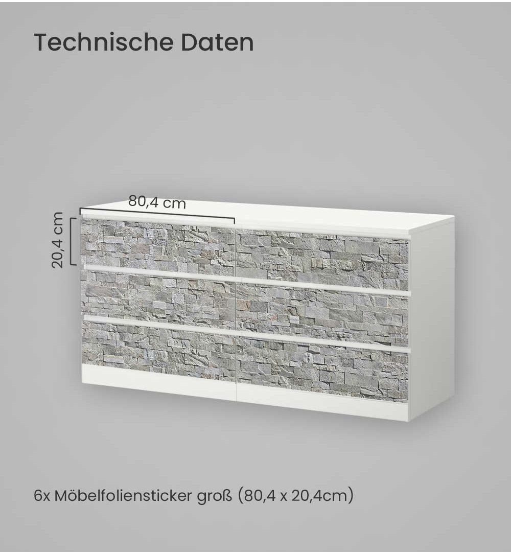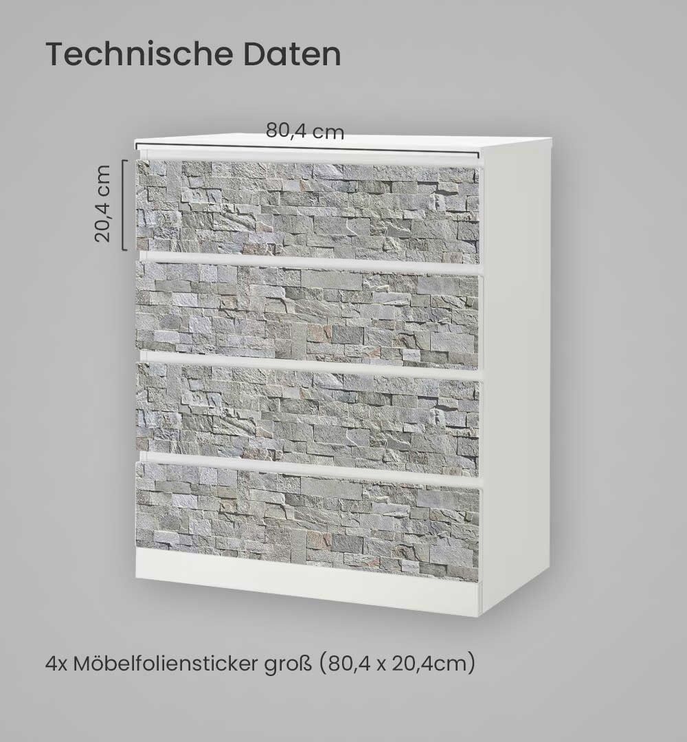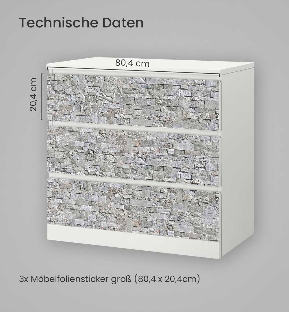 Kommodenaufkleber Malm Steinwand hellgrau Klebefolie Möbelfolie Folie