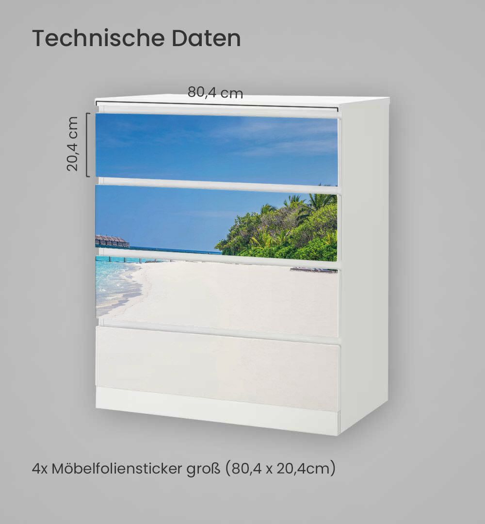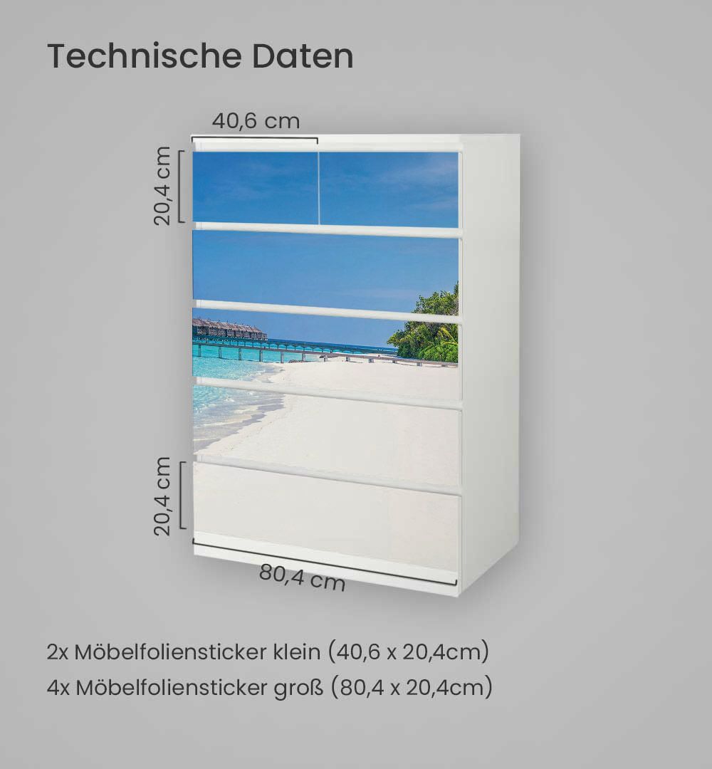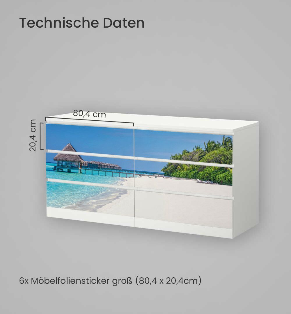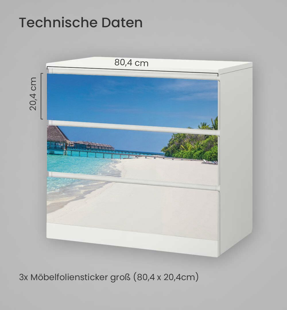 Kommodenaufkleber Malm Traumstrand auf den Malediven Klebefolie Möbelfolie Folie
