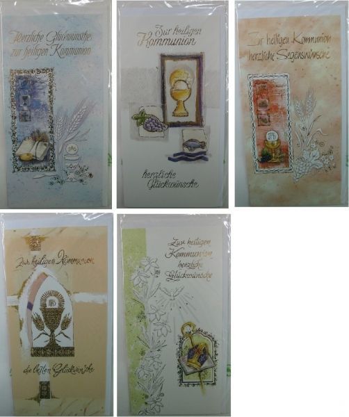 Kommunionkarte - Glückwunschkarte mit Golddruck - 5 Stück