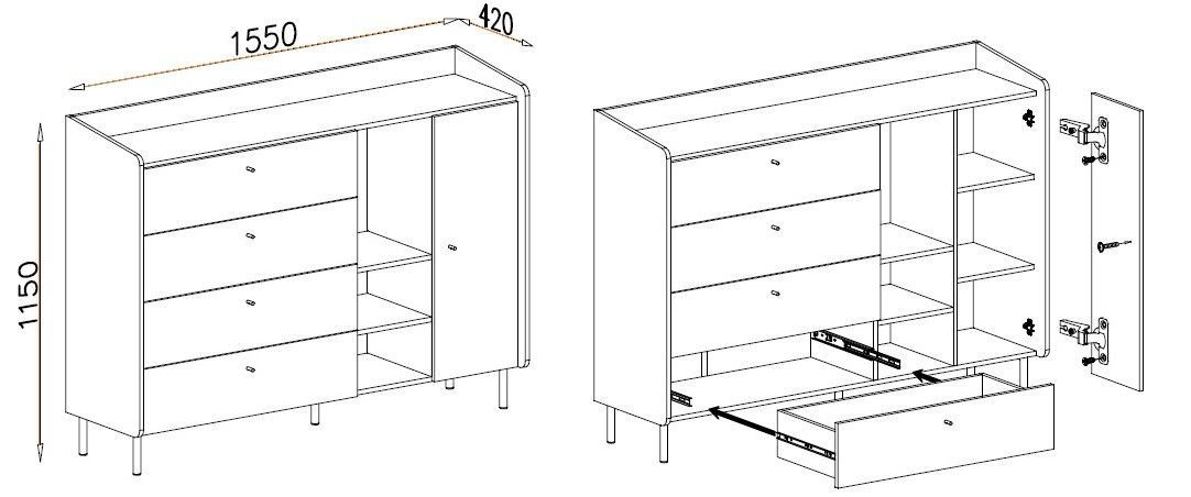 Komode mit offenem Regal 4 Schubladen & Fächer 155x115cm Modern sandbeige