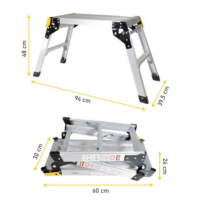 Kompakte Arbeitsplattform bis 150 kg belastbar, Arbeitsbühne 50 cm hoch, Aluleiter mi