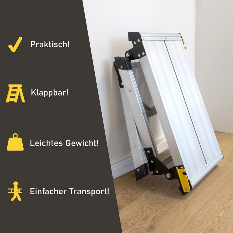 • Arbeitsplattform bis 150 kg belastbar, Arbeitsbühne 50 cm hoch, Aluleiter mit 2 Stufe