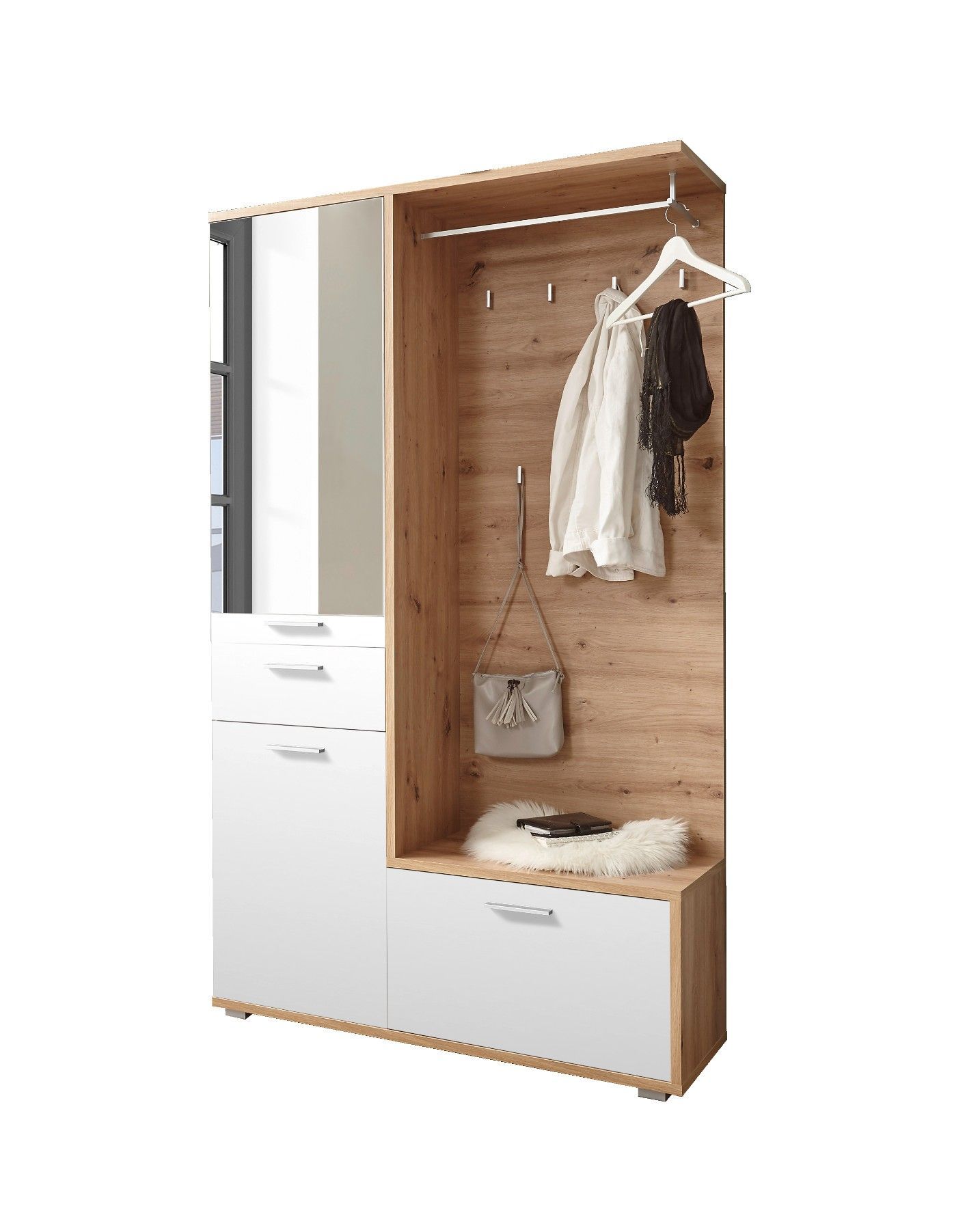 Kompaktgarderobe Entry in Artisan Eiche Nb. / Weiß 117 cm breit