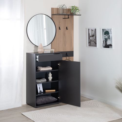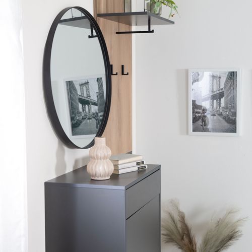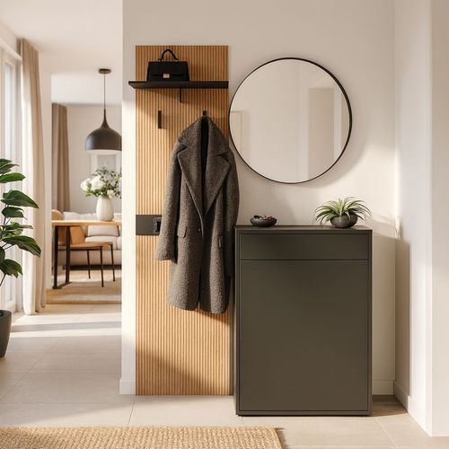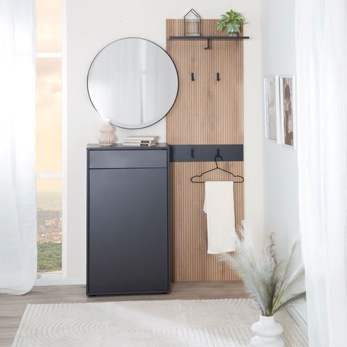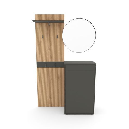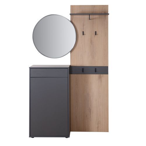 Kompaktgarderobe "Salon" mit Spiegel, Schrank, Kleiderhaken und Hutablage, Grau/Eiche