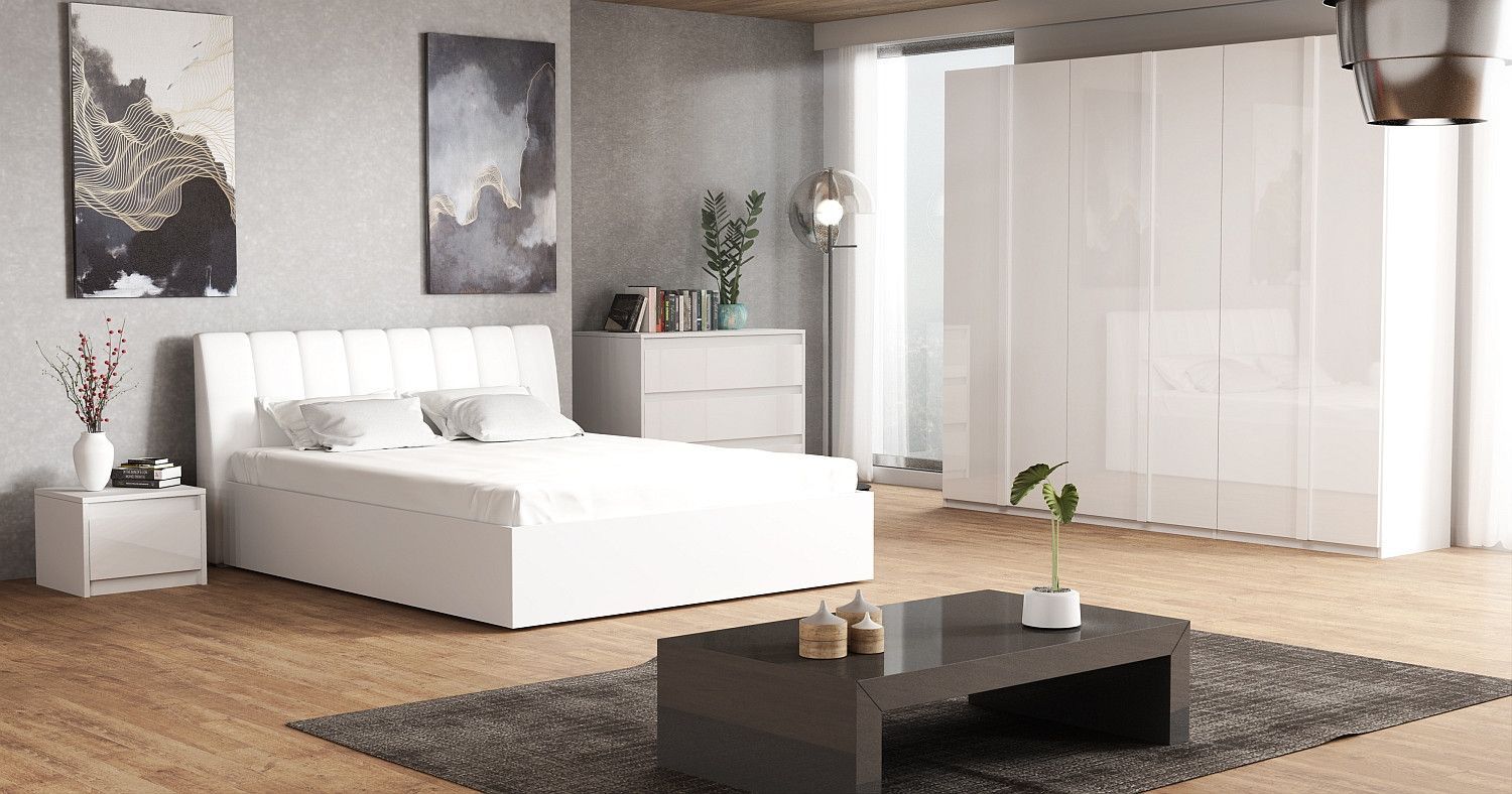 Komplett Schlafzimmer Bella Italia in Hochglanz Weiß