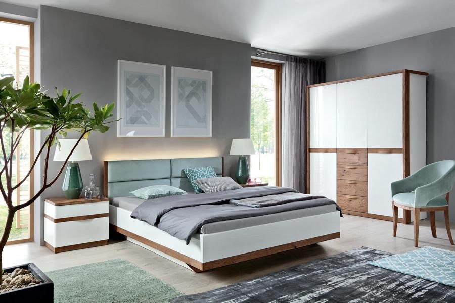 Hellgraues Schlafzimmer Bett Doppelbetten Luxuriöse Betten Holzgestell