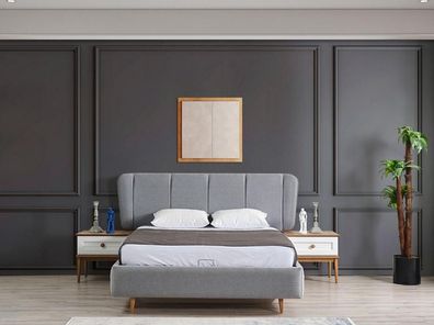 Luxuriöses Betten Schlafzimmer grau Doppelbett Holzbetten Bettgestell Bett