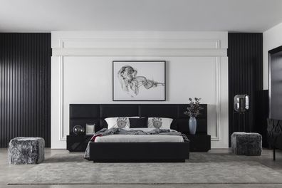 Luxus Bett mit Nachttischen Loft Schlafzimmer Möbel Betten Sets Gepolstert