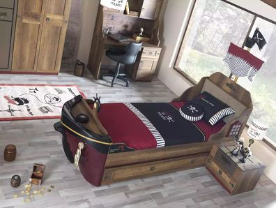 Pirat Funktionsbett Kinderbett Braun Holz Set Nachttisch Betten Bett