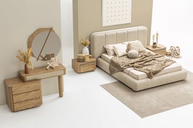 Beiges Schlafzimmermöbel-Set aus Holz mit Bett, Nachttischen