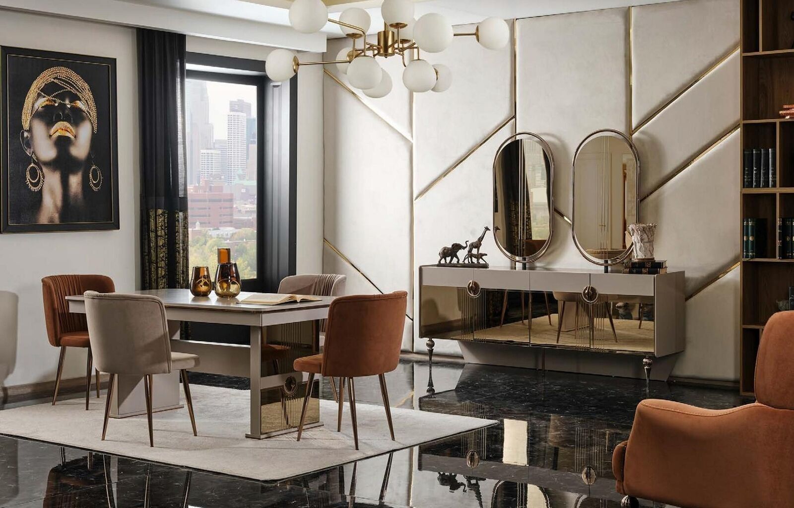 Komplett Set Esstisch 6x Stühle Esszimmer Set Ess Edelstahl Tisch 7tlg