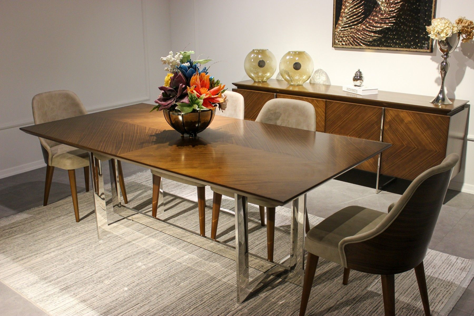Komplett Set Esstisch Luxus Esszimmer Design Möbel Sideboard 4x Stühle