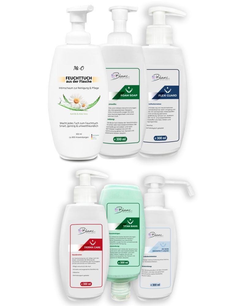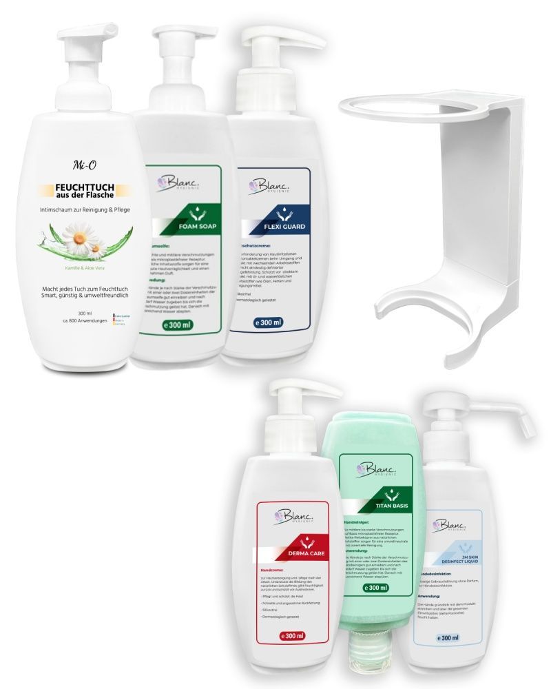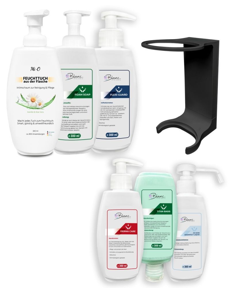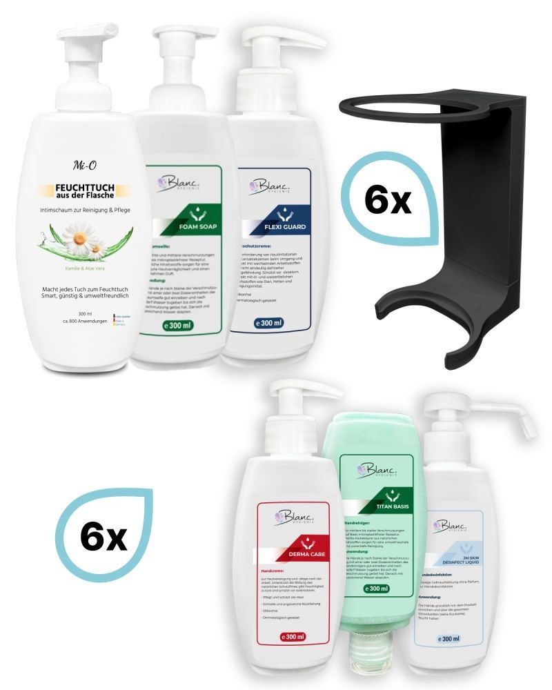 Komplett-set: Mini Fix-STARTER- 6x Mini Fix Spender, weiß oder schwarz + je eine Flas