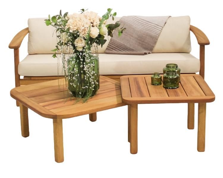 Komplett Set Sofa 3 Sitzer 2X Couchtische Designer Gartenmöbel Holz Textil