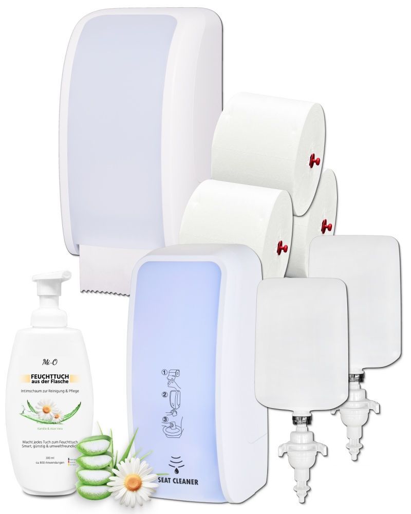 Komplett-set Toilettenkabine: Spender + SENSOR Sitzreinigung + Schaum + Fülllmittel