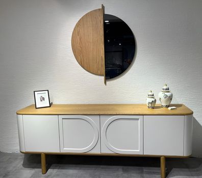 Beiges Modernes Sideboard Luxuriöse Wohnzimmer Anrichte Spiegel