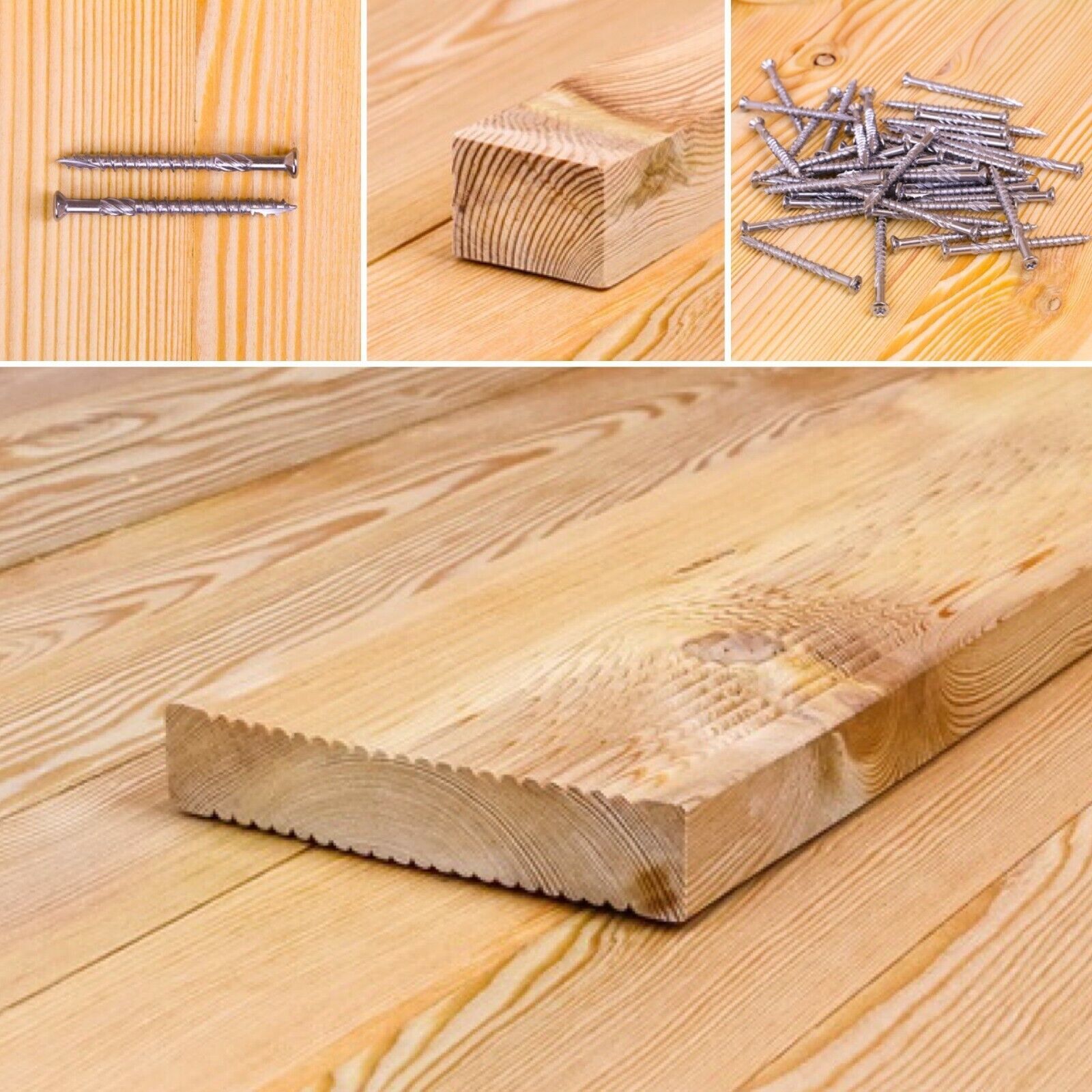 Komplettbausatz Terrassendielen 27 x 140 mm, Sib. Lärche Premium Hartholz 9-80m²