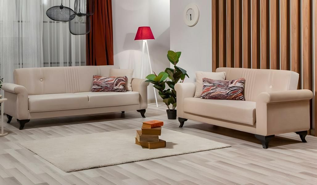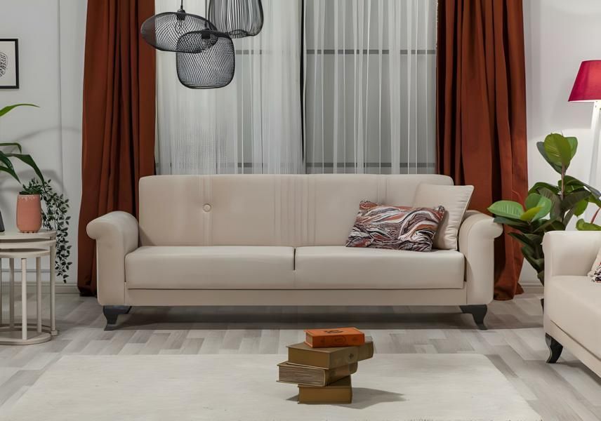 Komplette beige Couchgarnitur Dreisitzer Zweisitzer und Sessel Stoff