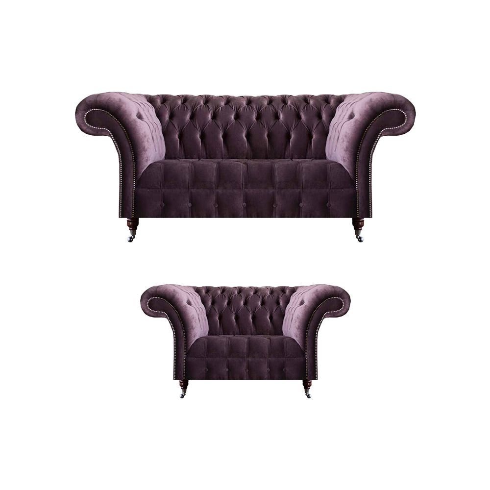 Komplette Lila Chesterfield Sitzgarnitur Textil Dreisitzer 2-Sitzer 2tlg