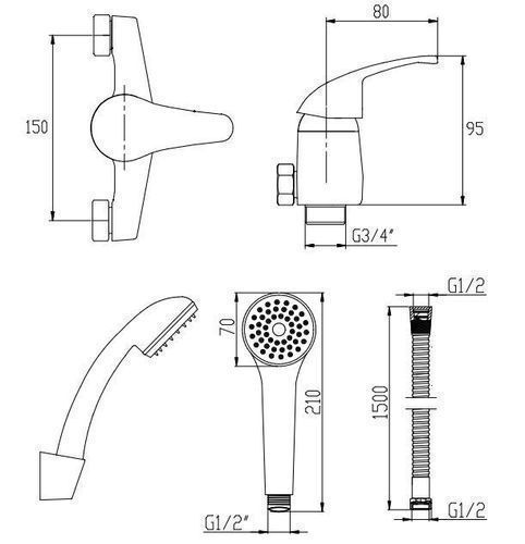 Komplette Set Brausearmatur Wasserhahn MITRIS Brausebatterie für Badezimmer in Silber