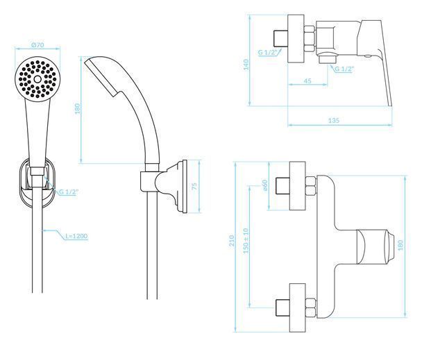 Komplette Set Brausearmatur Wasserhahn ORIS Brausebatterie für Badezimmer in Chrom