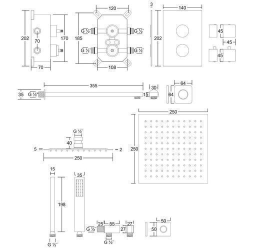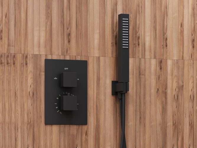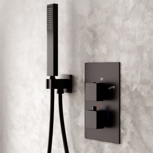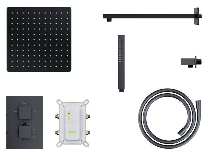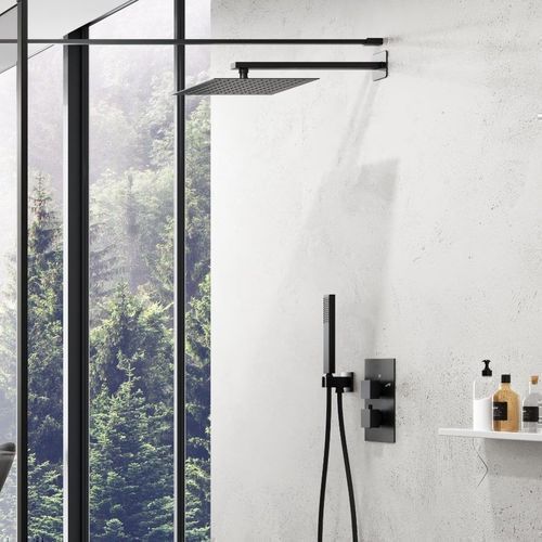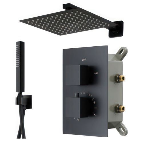 Komplettes Duschsystem ADOUR Unterputz Armatur Thermostatisch mit Kopfbrause Schwarz