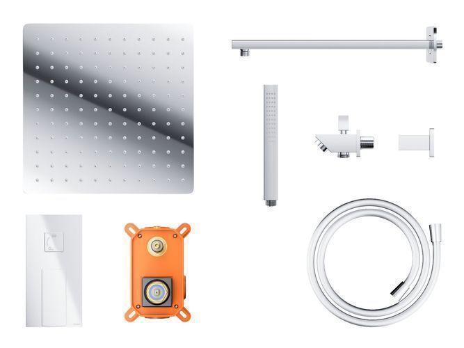 Komplettes Duschsystem ANGO Unterputz Armatur Wasserhahn mit Kopfbrause in Chrom