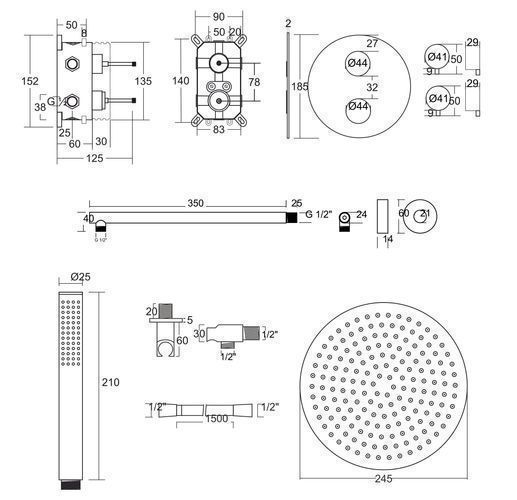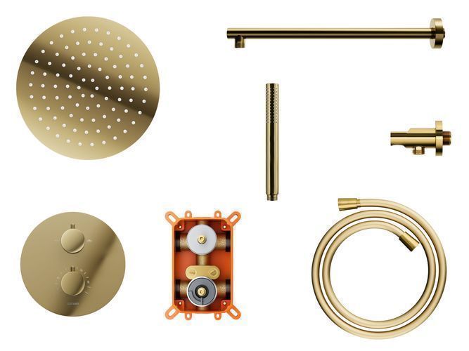 Komplettes Duschsystem LUGO Unterputz Armatur Thermostatisch mit Kopfbrause in Gold