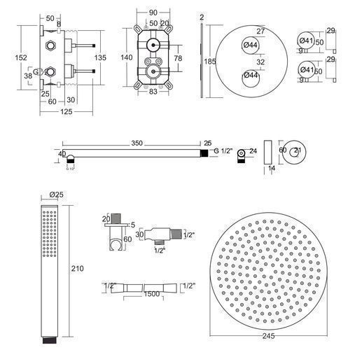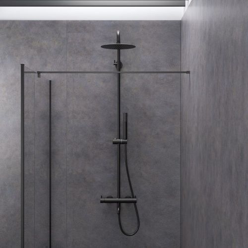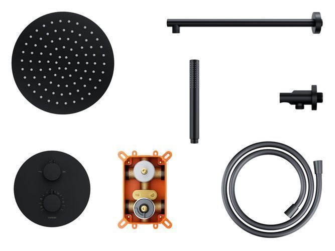 Komplettes Duschsystem LUGO Unterputz Armatur Thermostatisch mit Kopfbrause Schwarz