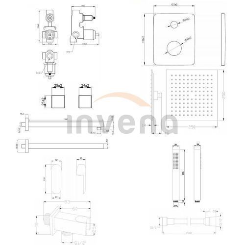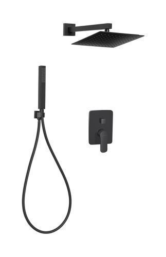 Komplettes Duschsystem SIROS Unterputz Armatur Wasserhahn mit Kopfbrause in Schwarz
