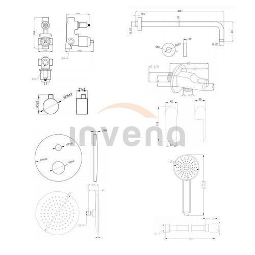 Komplettes Duschsystem SIROS Unterputz Armatur Wasserhahn mit Kopfbrause in Schwarz