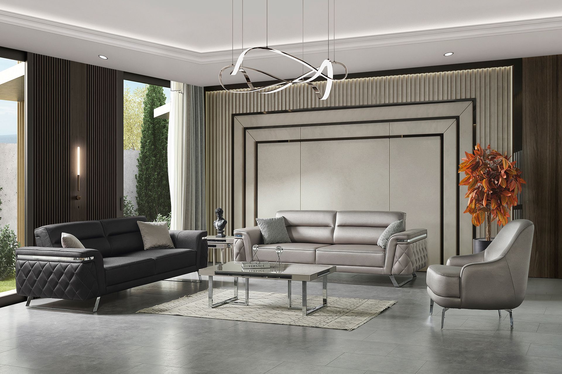 Komplettes Möbelset in Silber 2x 3-Sitzer Sofa Sessel Couchtisch
