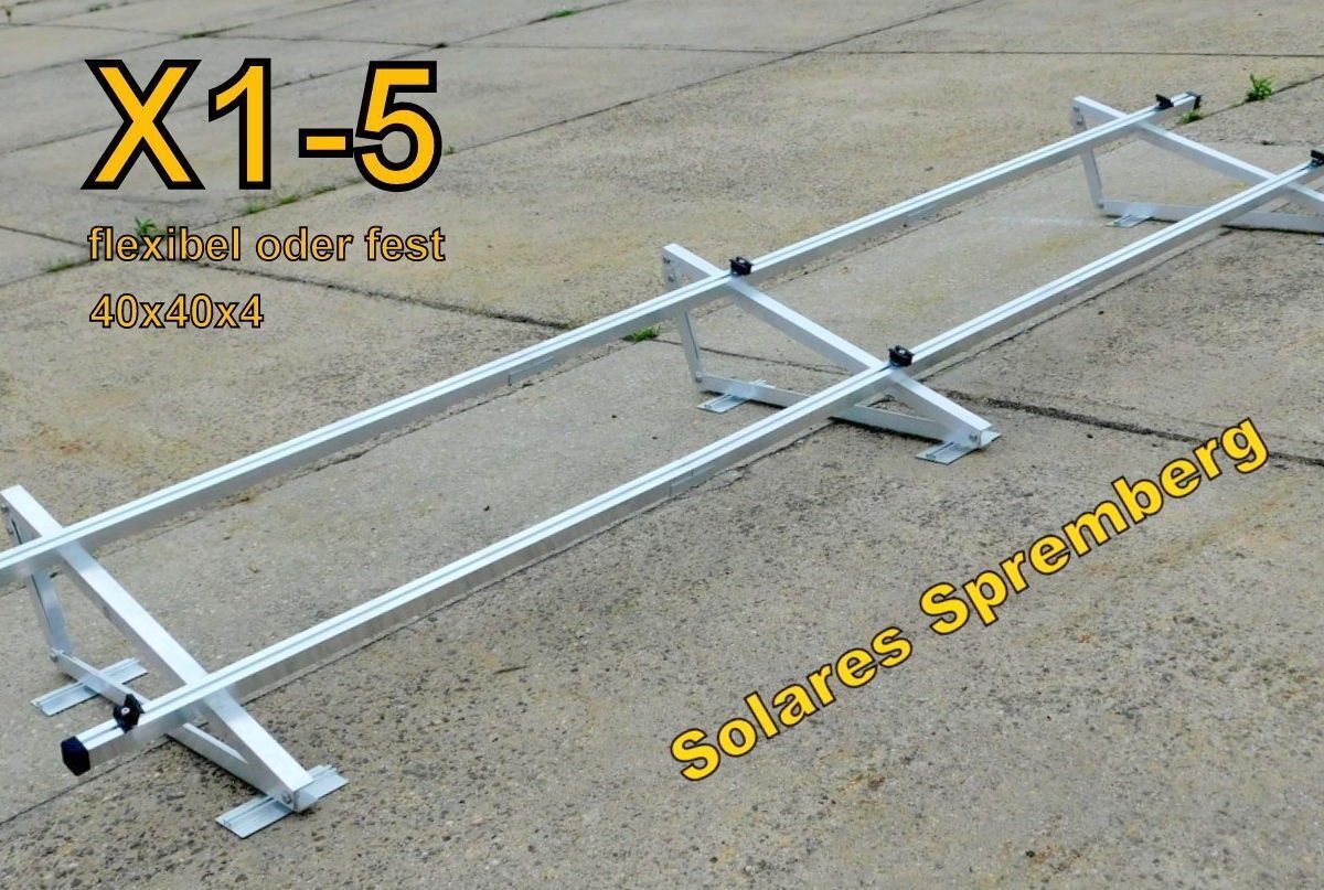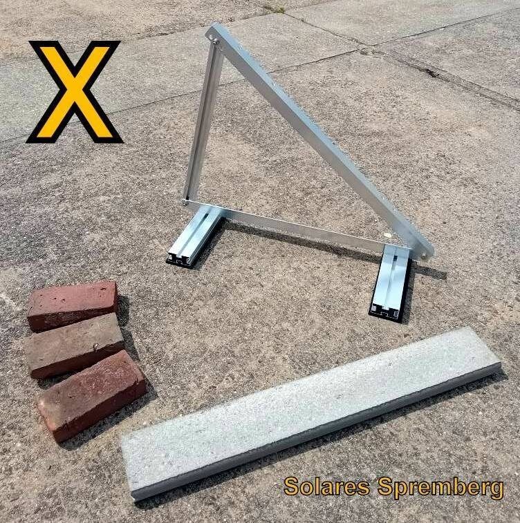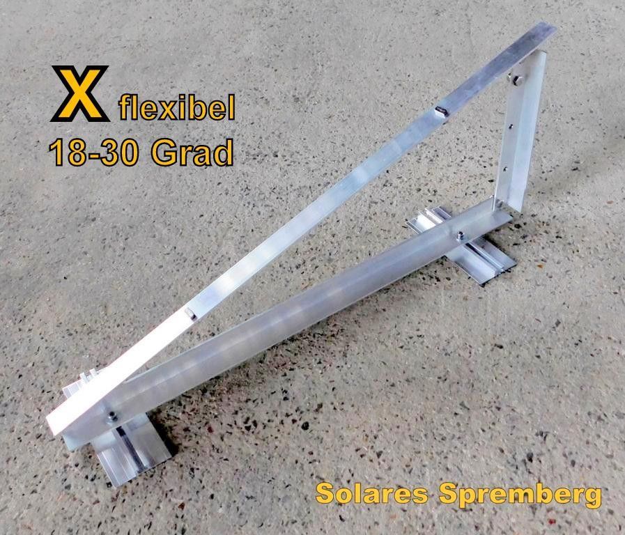 Wahlweise für Flachdach Kiesdach Gründach Bitumdach Trapezblechdach - Komplettlösung Aufständerung für 1-4x Module horizontal quer schwere Ausführung X für Flachdach Bitumdach Trapezblechdach 18-30 Grad flexibel (auf unserer eigenen Internetpräsenz auchfür bis zu 10x Module in Reihe erhältlich) schw