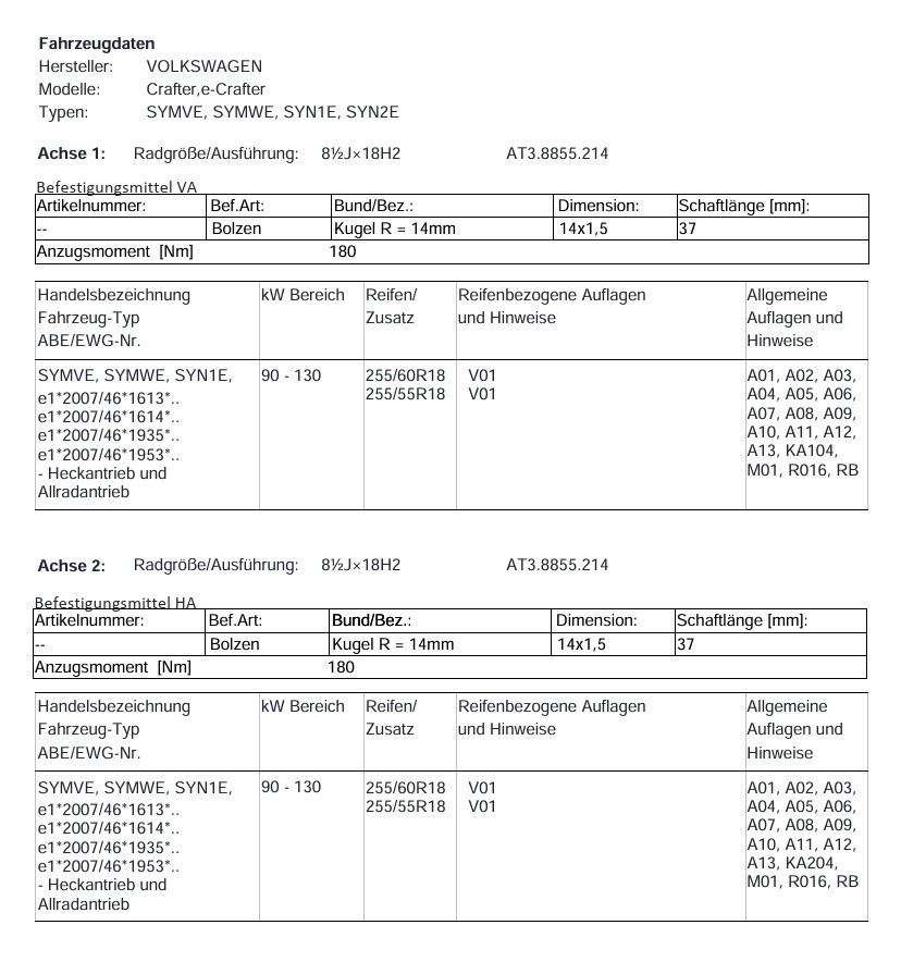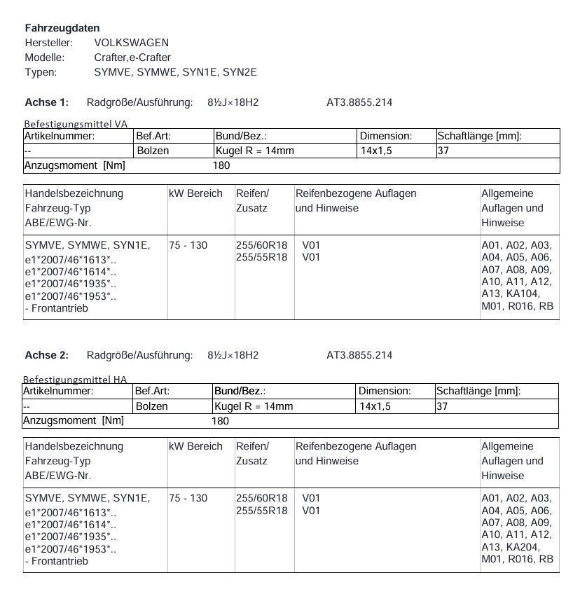 für Crafter Wohnmobil Vancontact Camper Monotube AT Felge 18 Zoll Kompletträder