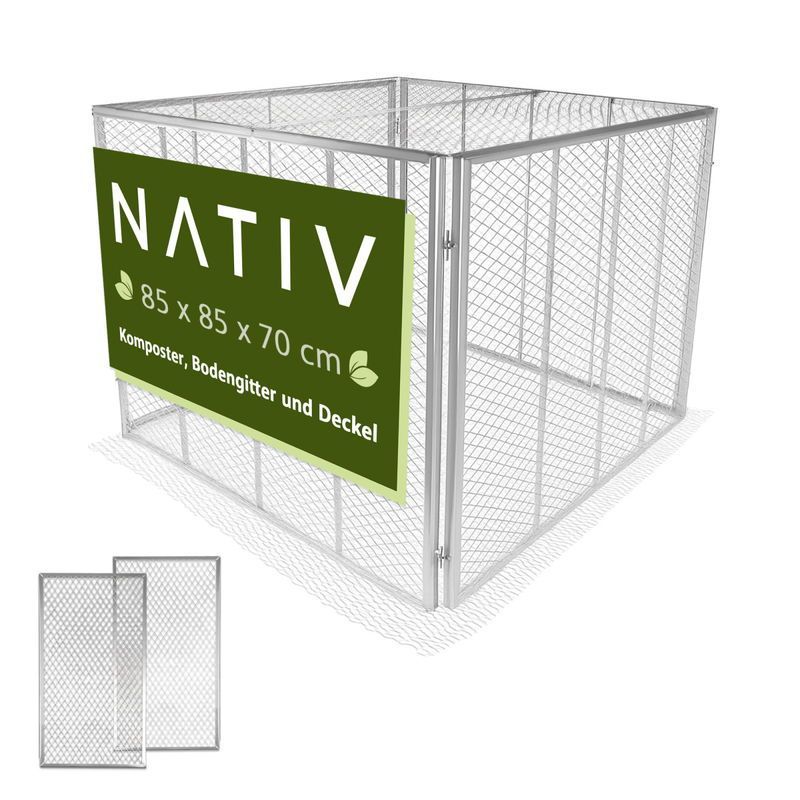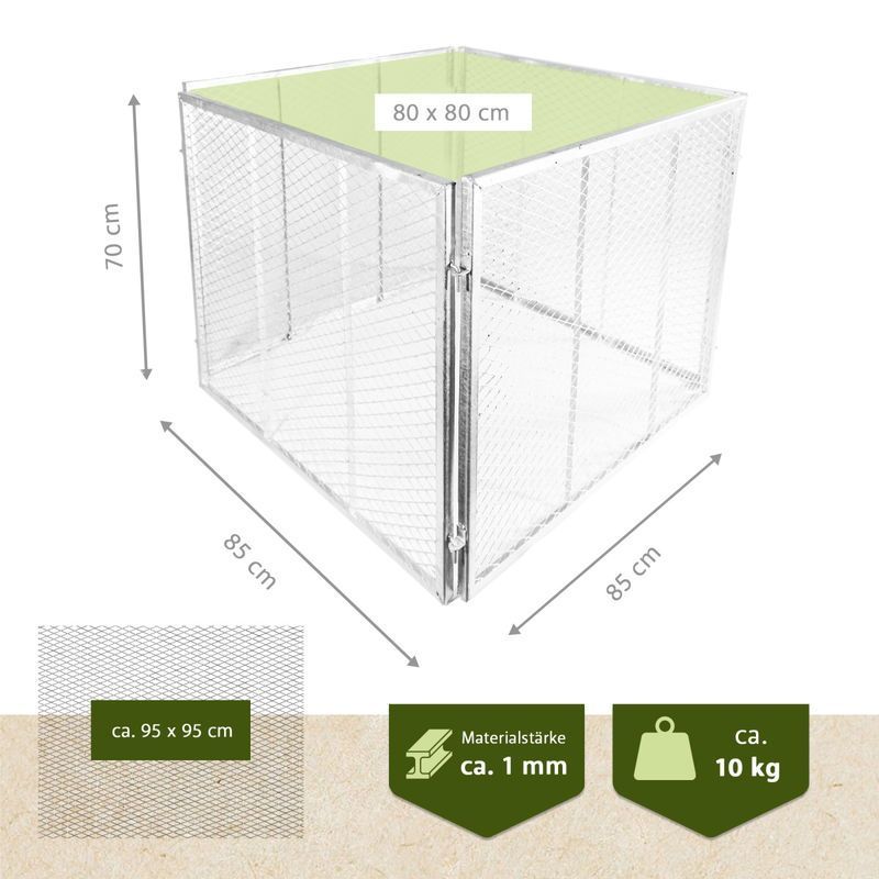 Komposter 80x80x70 cm mit Deckel und Bodengitter, Metallkomposter mit Abdeckung : M