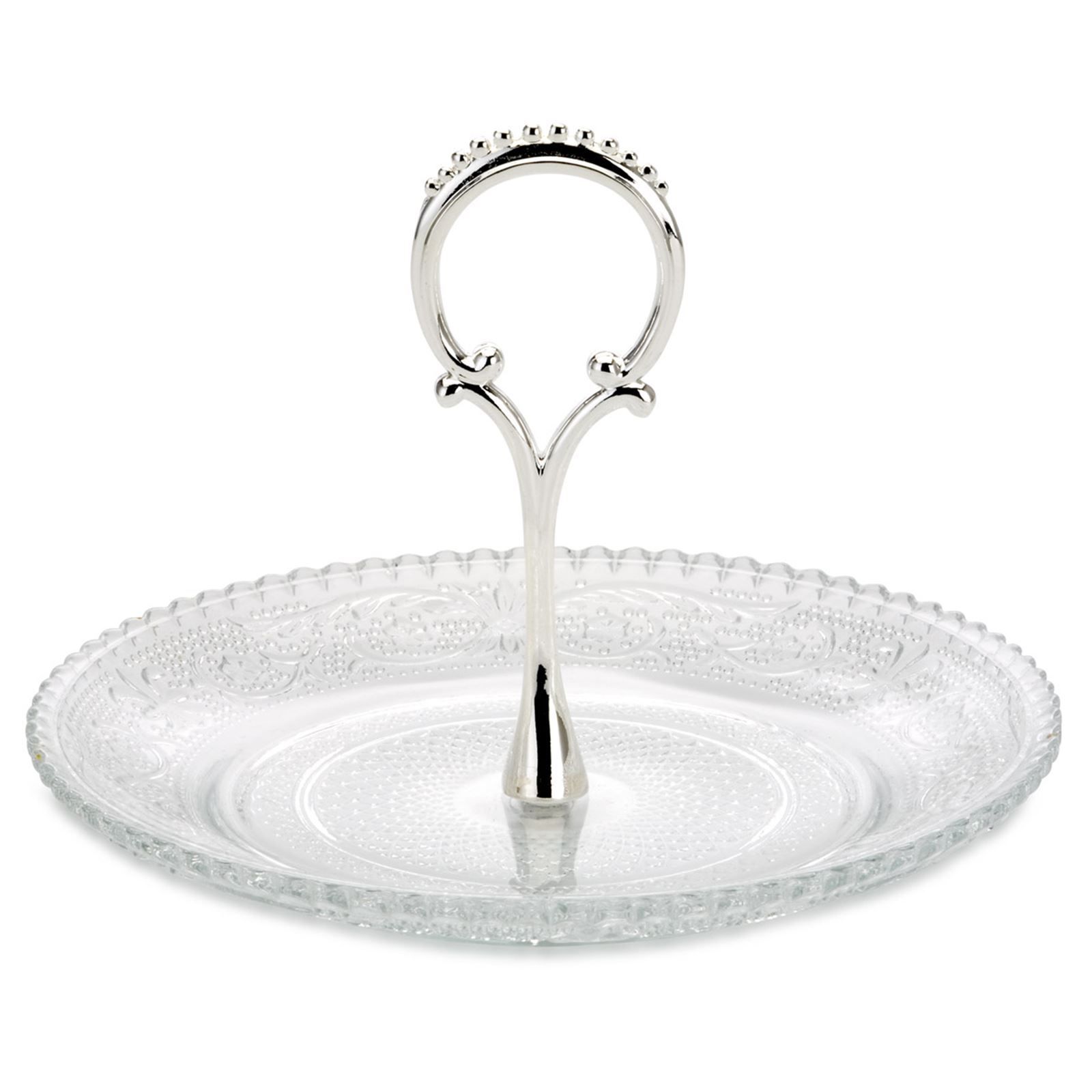 Konfektschale Ø 15 cm Glas-Schale Ring-Griff versilberte Snackschale Obstschale