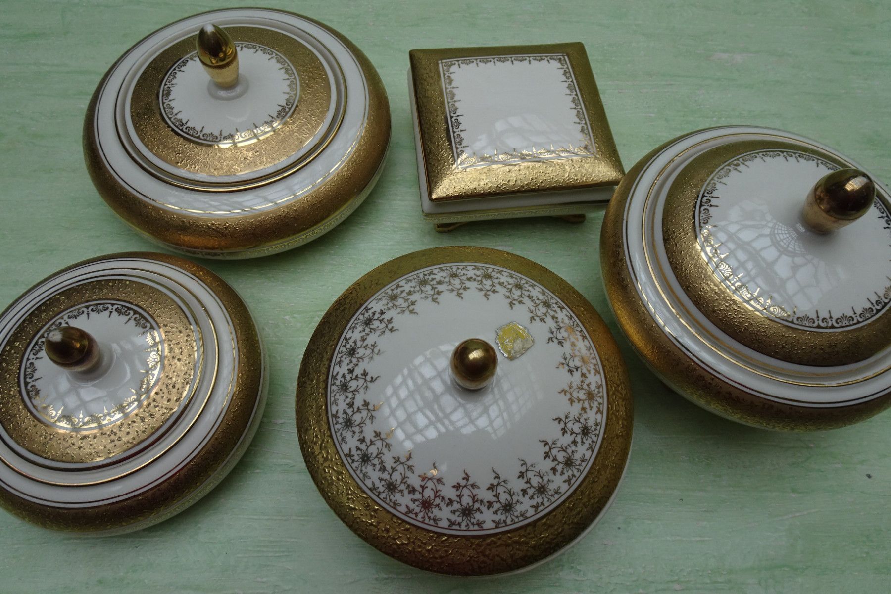 Konfektschalen Deckeldosen Bonboniere Royal KM Kronach creme-gold
