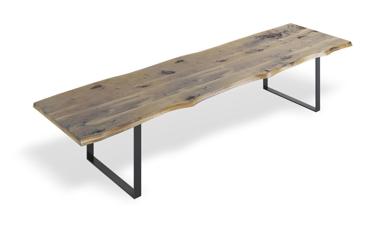 Konferenztisch Avangard 400 x 110 cm Eiche Massiv Baumkante U-Gestell Schwarz