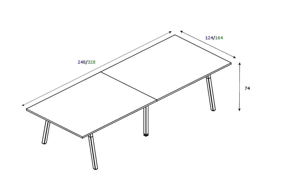 Konferenztisch POLARE mit Massivholzbeinen in Esche 248/328 x 124 x 74 cm